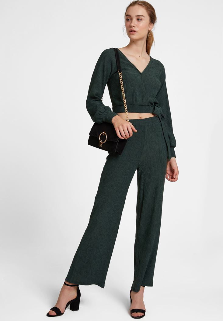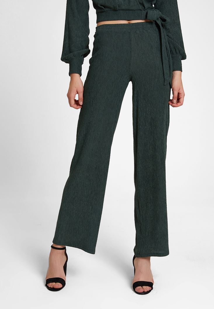 • Bayan Yeşil Dokulu Bol Paça Pantolon