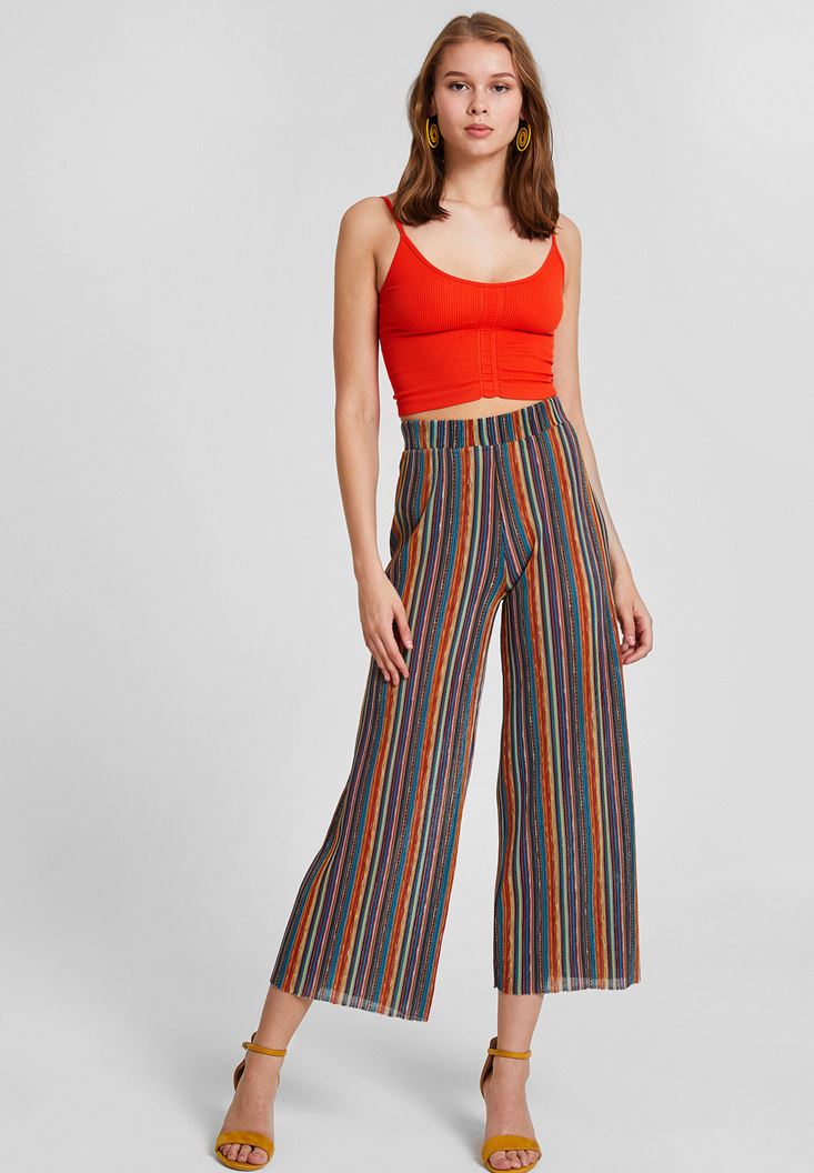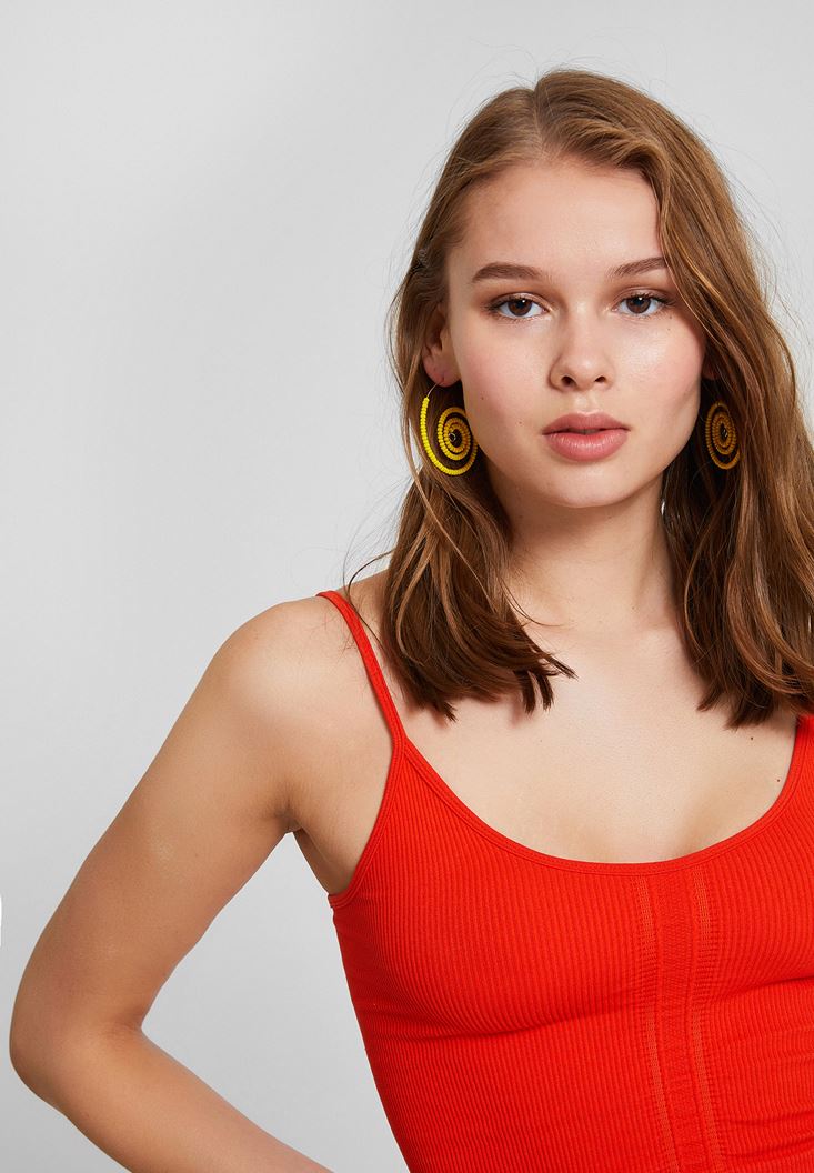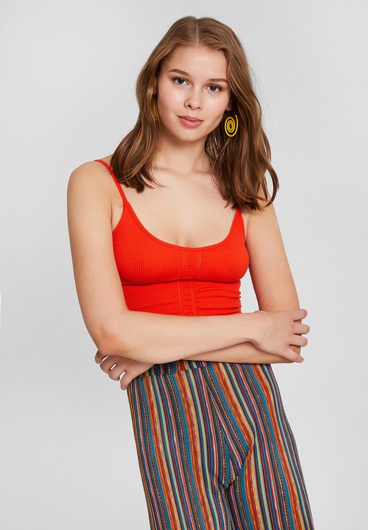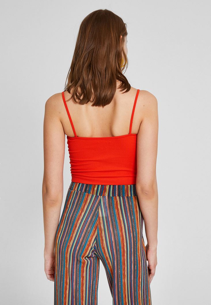 Kırmızı Dokulu Crop Bluz