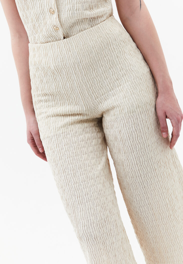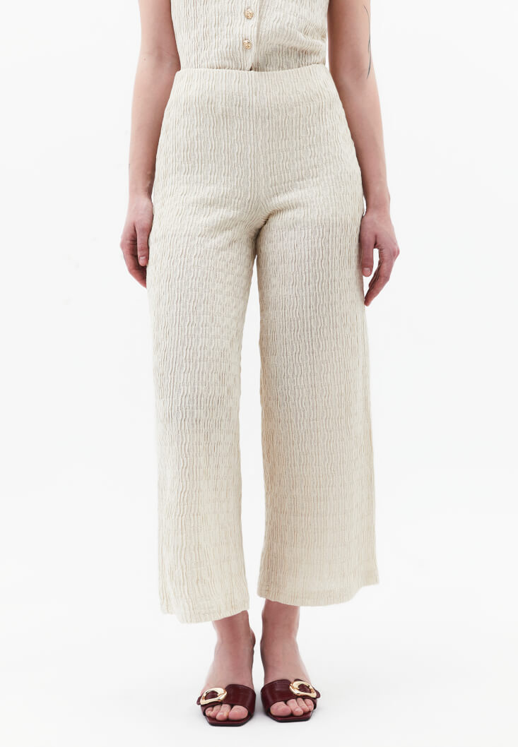 • Bayan Krem Dokulu Culotte Pantolon