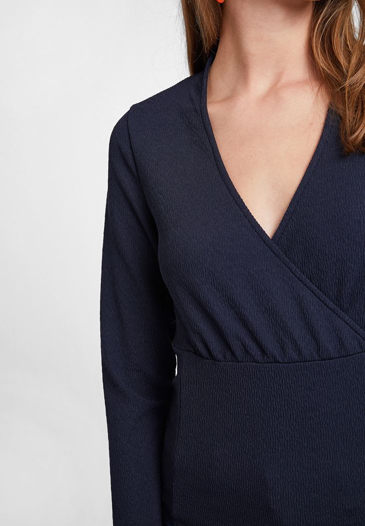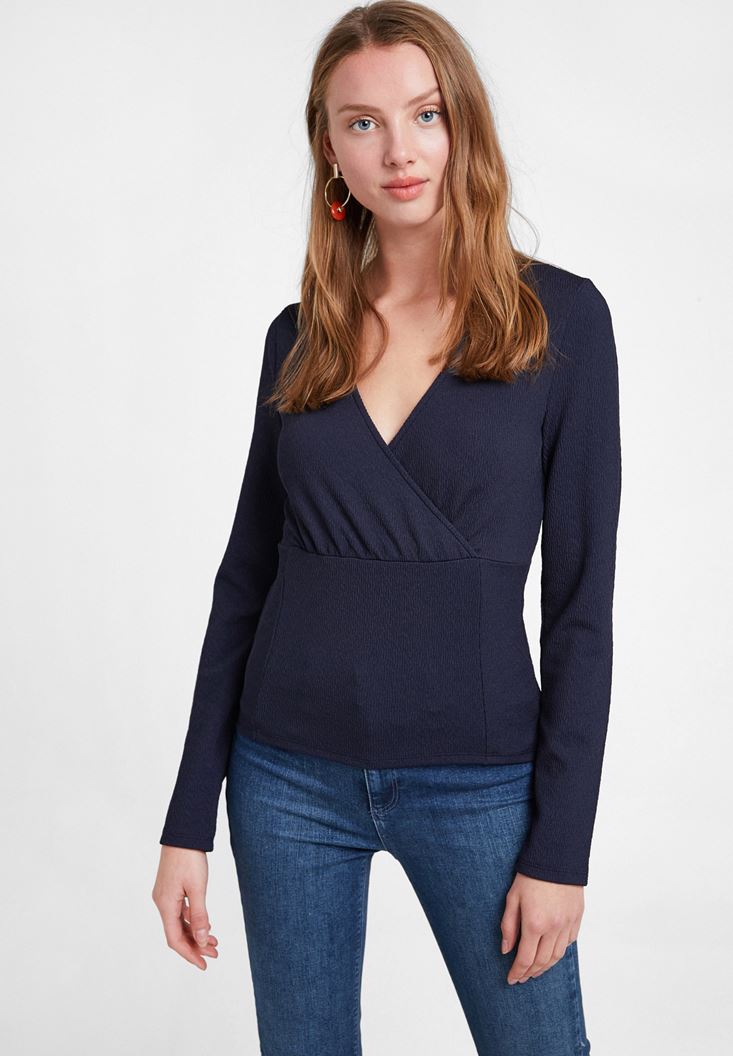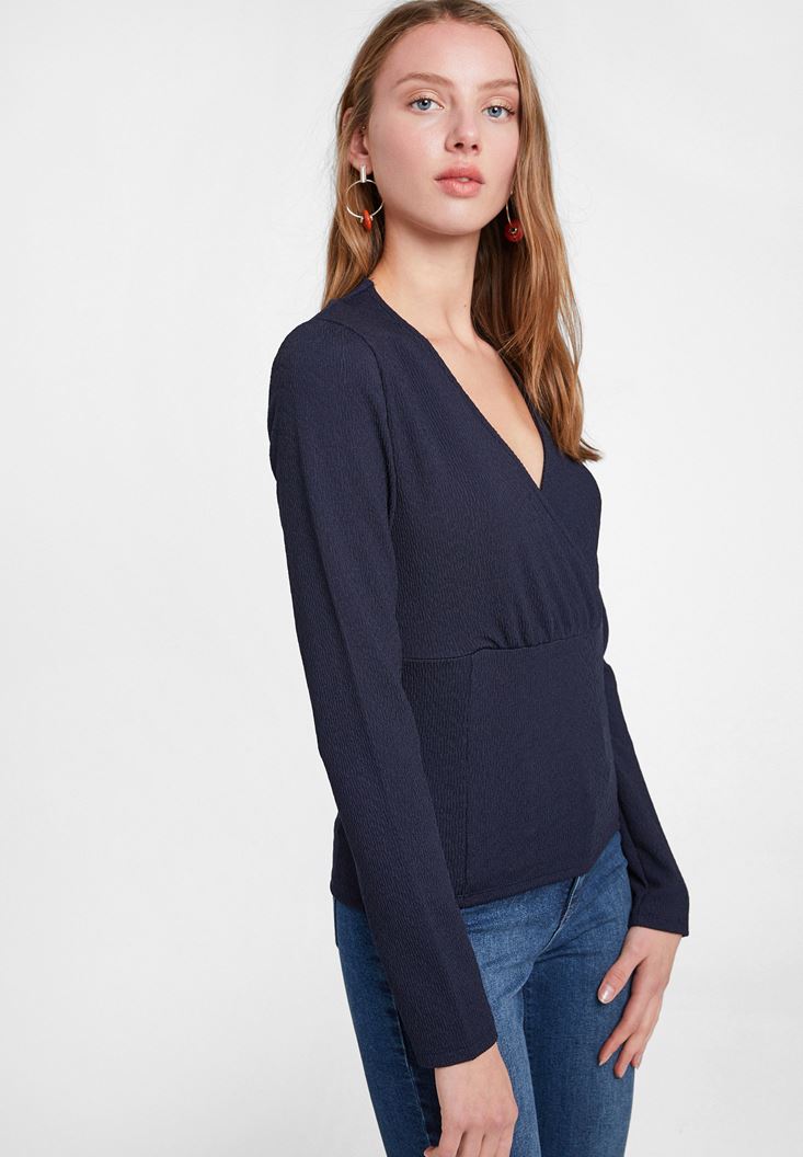 • Bayan Lacivert Dokulu Kruvaze Bluz