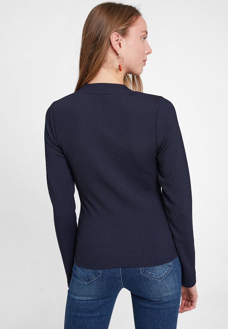 Dokulu Kruvaze bluz modeli detayları, kesimi ve duruşu ile kombinlerinize zarif bir şıklık kazandırmanıza yardımcı olacak bluz modelleri arasında yer alıyor. Kruvaze kesimi ön plana çıkaran dikiş detayları ile vücuda başarılı bir şekilde oturan bluz modeli yumuşak dokusu ile teninizi çok hoş bir his ile saracak. Kruvaze yaka kesiminde kullanılan biye detayları ve kup altında yer alan dikişleri ile zarif bir şıklık sunan bluz modelini farklı tarzlara sahip parçalarla birlikte kullanarak kendinize oldukça özgün ve konforlu kombinler yapabilirsiniz. Uzun kol boyu, omuz hizasında yer alan dikişleri ve ense kısmında kullanılan yaka detayı ile detaylardan gelen şıklığı yansıtan OXXO tasarımı ile konforlu şıklığın tadını çıkarabilirsiniz.