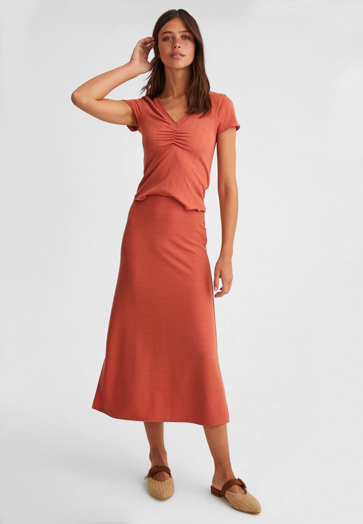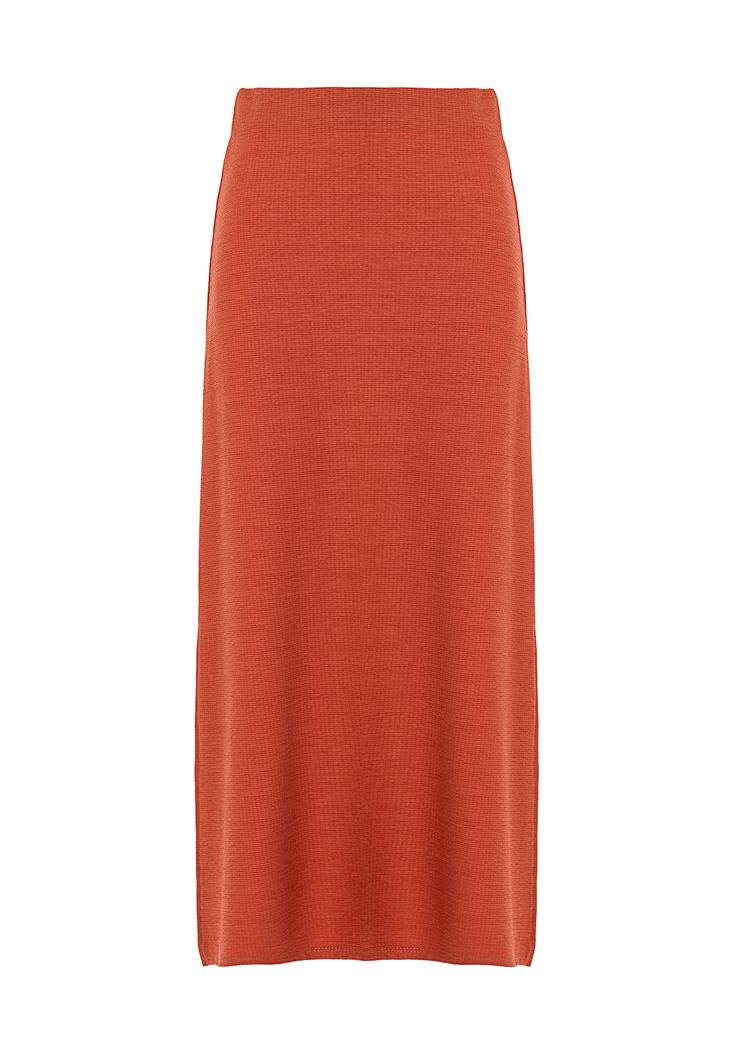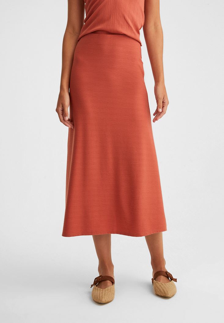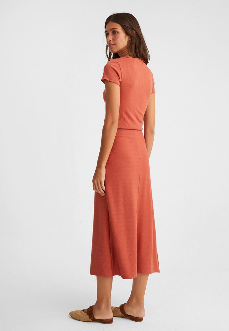 Turuncu Dokulu Midi Etek