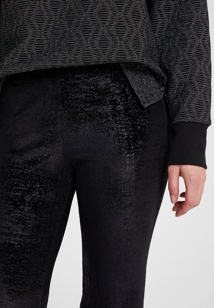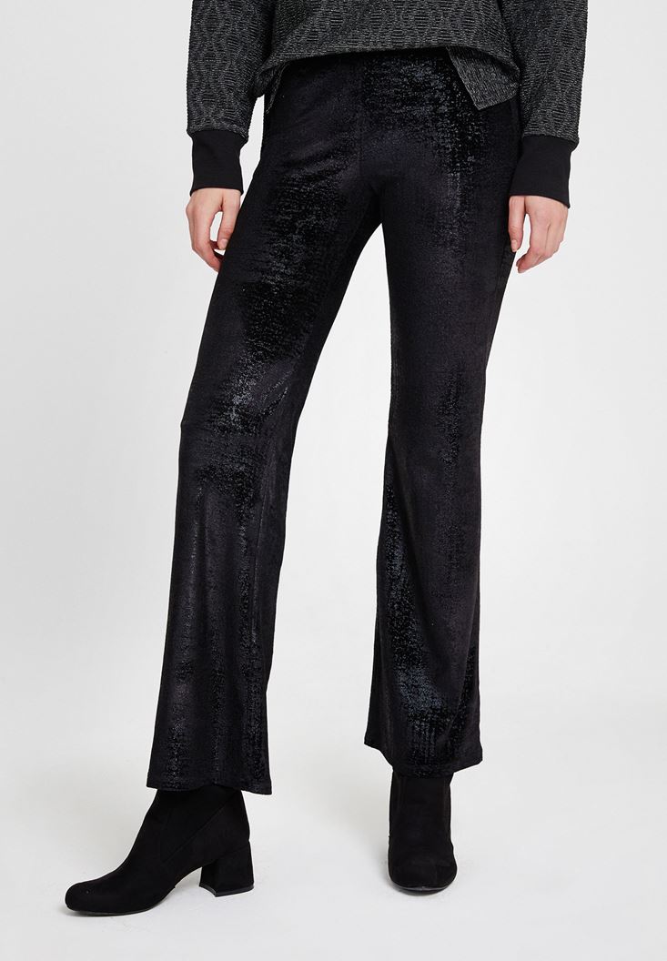 Dokulu Pantolon modeli vücudu saran yapısı, rahat kesimi ve zarif ışıltıları ile kullanmaktan keyif alacağınız pantolon modelleri arasında yer alacak. Pantolon modelinin sahip olduğu bol paça kesimi İspanyol pantolon modellerine modern bir bakış açısı getiren özel bir kesim. Tasarımın vücutta çok daha düzgün durmasını ve vücudu sarmasını sağlayan dikiş detayları hem şıklığı hem de hareket özgürlüğünü destekleyerek kendinizi her zaman rahat hissetmenize yardımcı olacak. Pantolon modelinin dokusunda bulunan elastan, tasarımın esneklik kazanmasını ve vücudu daha iyi sarmasını sağlayarak kullanım konforunu ön plana çıkarıyor. OXXO’nun kendine has ilhamının ışıltısını tasarıma yansıttığı pantolon modeli ile kendinize dikkat çekici ve özgün kombinler yapabilirsiniz.