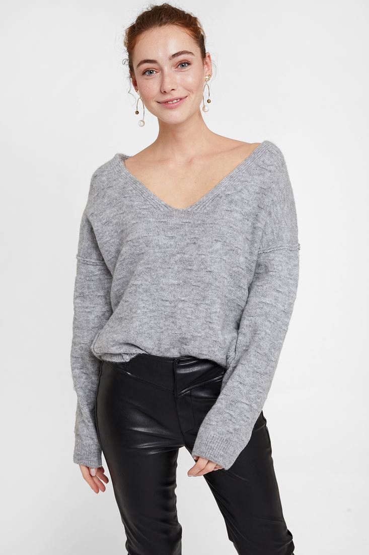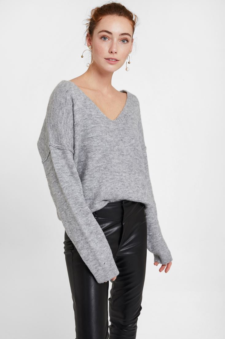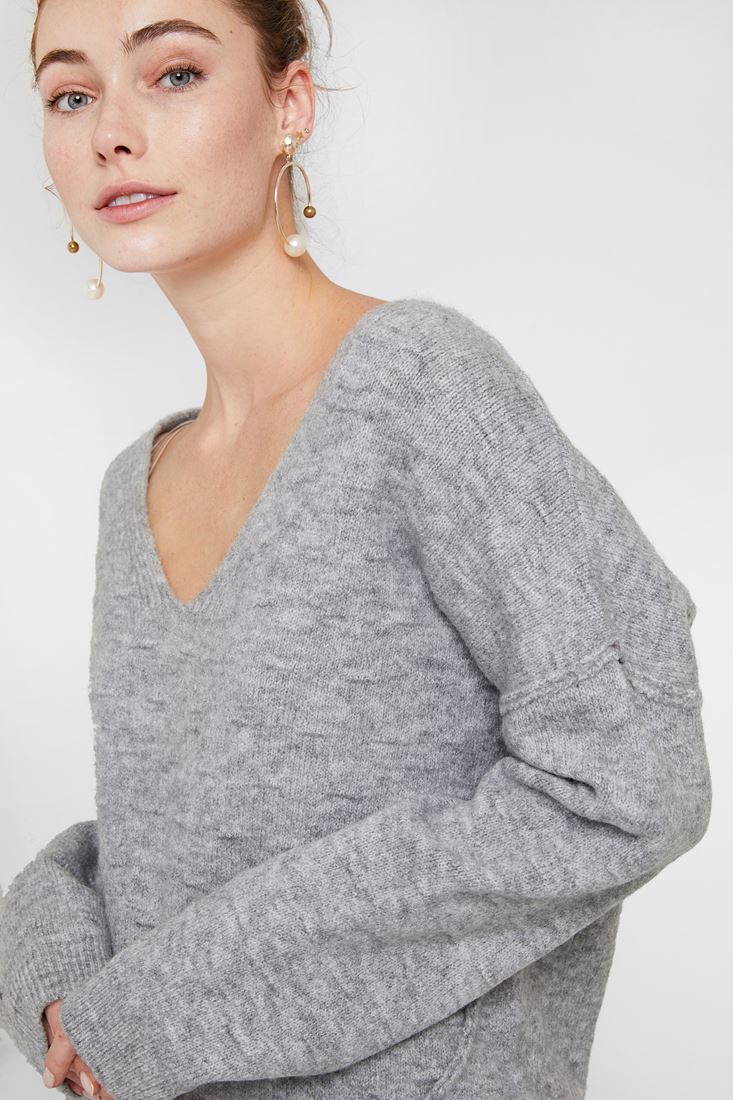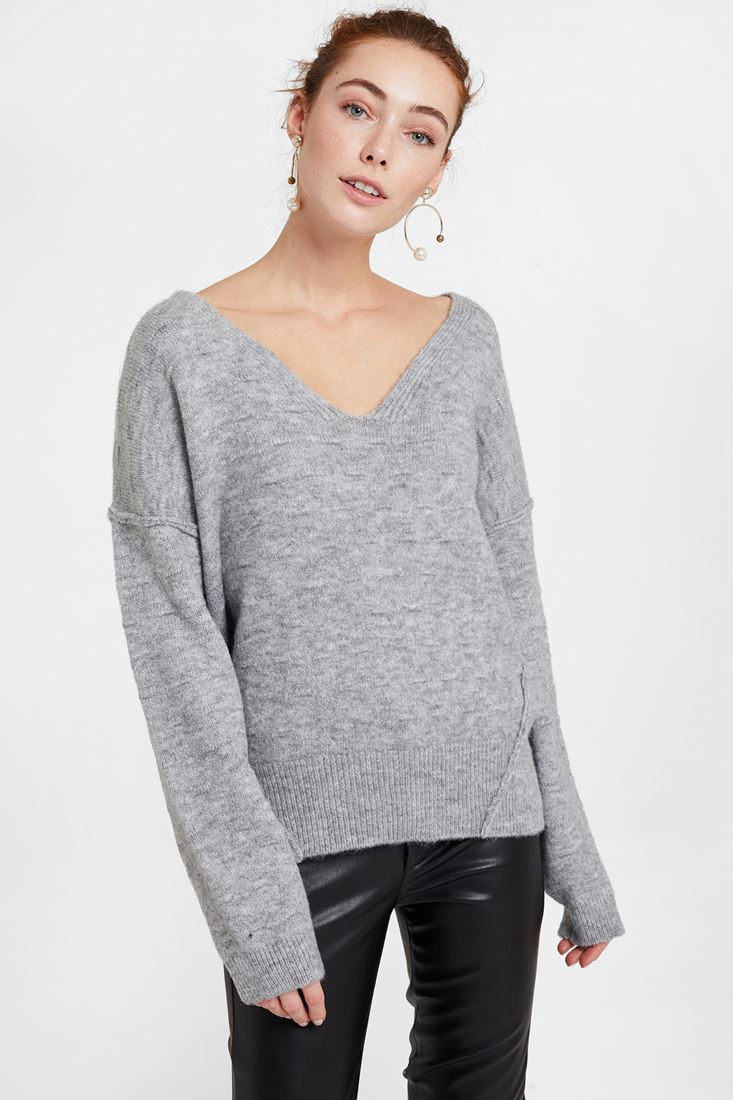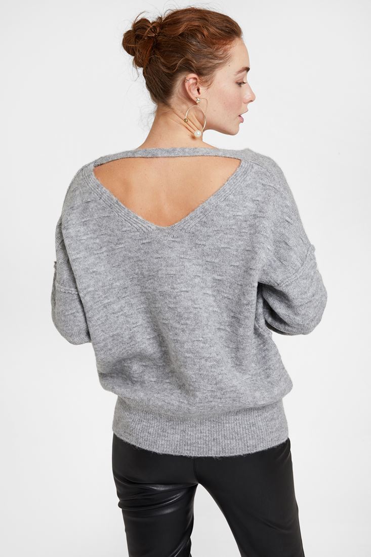 • Bayan Gri Dokulu Sırt Detaylı Kazak