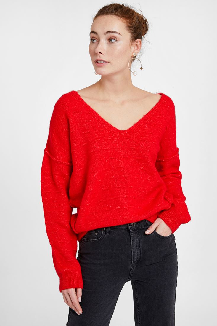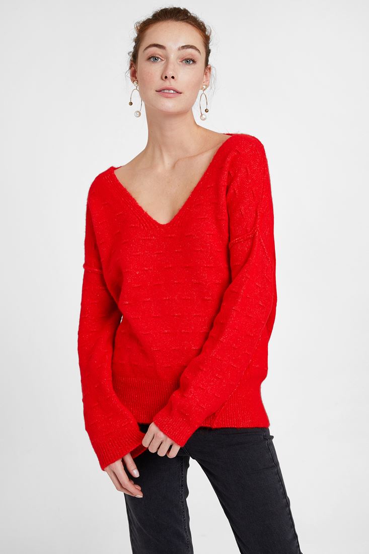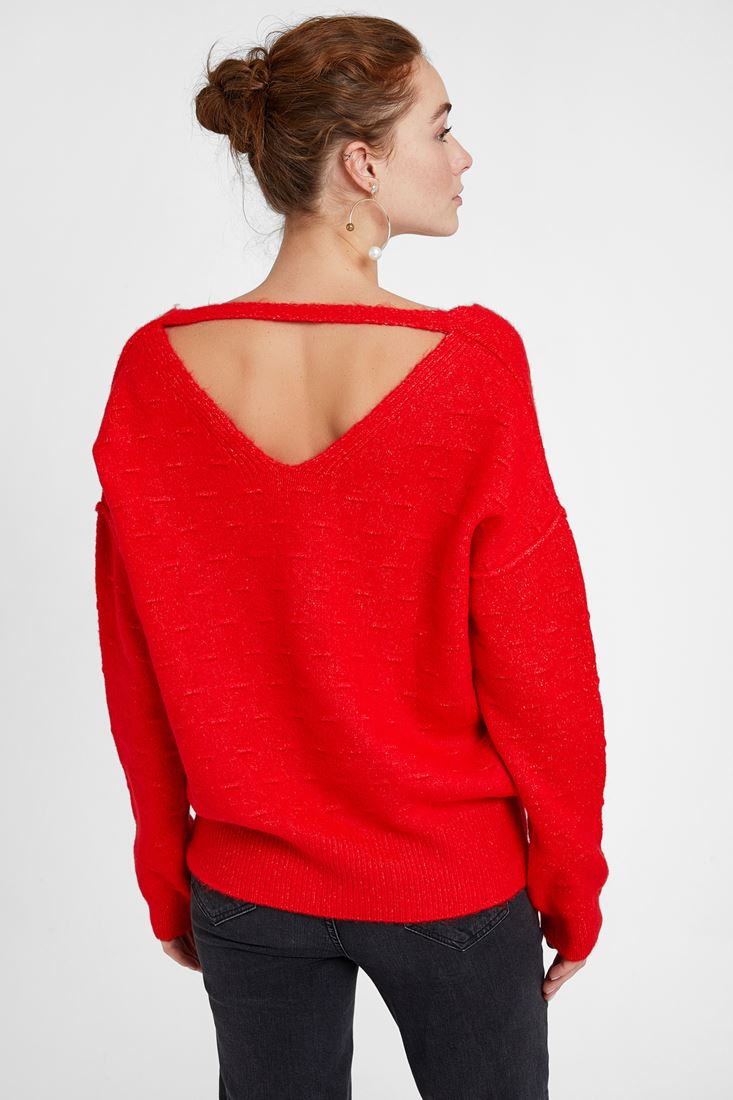 • Bayan Kırmızı Dokulu Sırt Detaylı Kazak