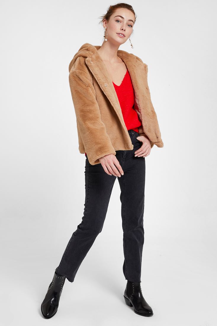 Dokulu Sırt Detaylı Kazak modeli sahip olduğu dökümlü kesim, yumuşak doku ve dikkat çekici tasarım detayları ile şıklığınızı en güzel şekilde tamamlayacak kazak modelleri arasında yer alıyor. Tasarımın sahip olduğu geniş V yaka kesim oldukça zarif bir boyun dekoltesi elde etmenize yardımcı oluyor. Dökümlü kesimi ile salaş bir duruşla sahip olan kazak modelinin bel kesiminde kullanılan lastik detayı tasarımım farklı şekillerde kullanılmasına olanak sağlıyor. Geniş yaka kesimi ile simetri oluşturacak şekilde tasarlanan V formundaki sırt dekoltesi tasarıma zarif ve etkileyici bir görünüm kazandırıyor. Akrilik dokusu ile yumuşak ve konforlu bir kullanım hissi sağlayan kazak modeli, OXXO’nun enerjisini ve özgün ilhamını yansıtıyor.