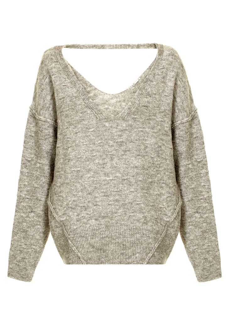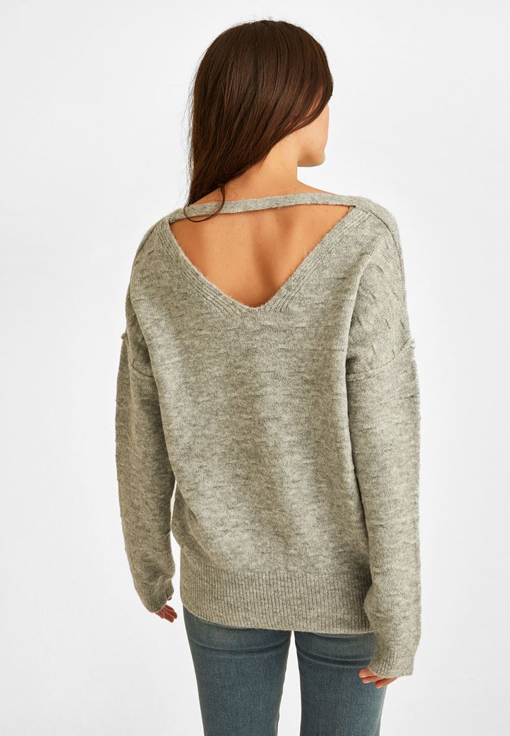 • Bayan Gri Dokulu Sırt Detaylı Kazak