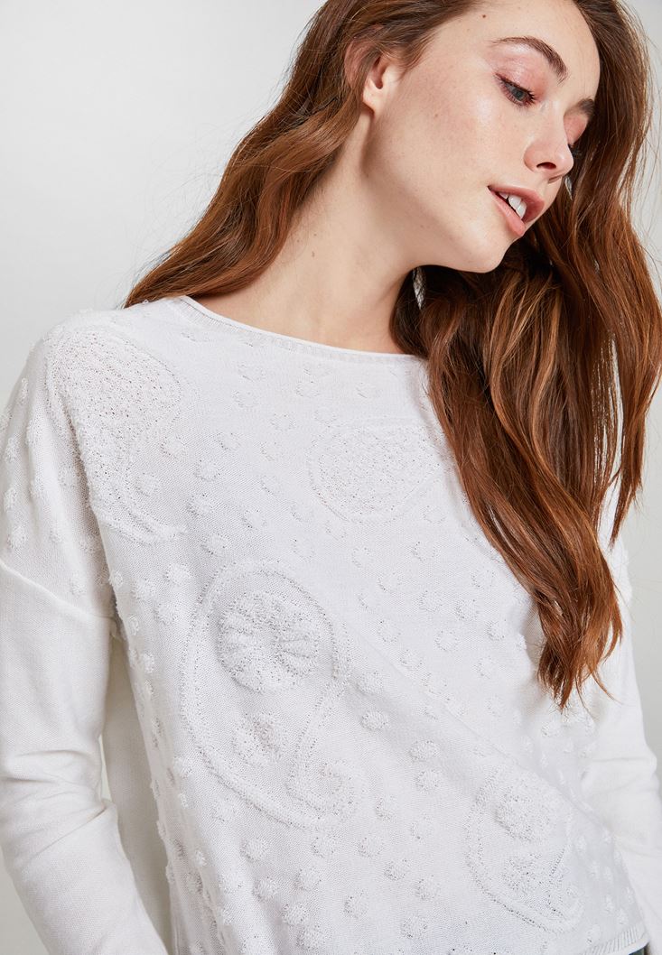 • Bayan Krem Dokulu Uzun Kollu Bluz