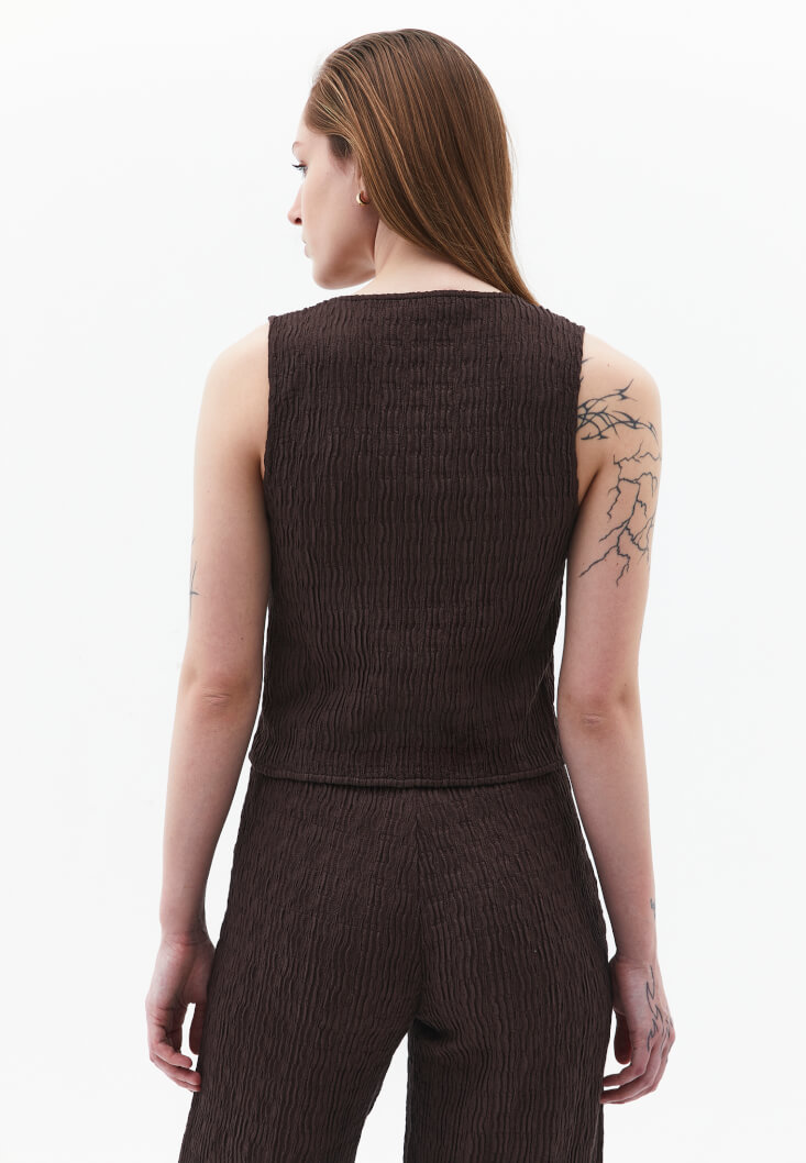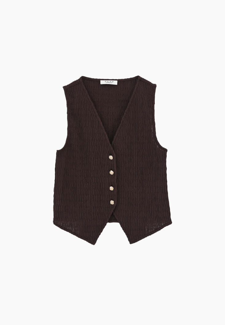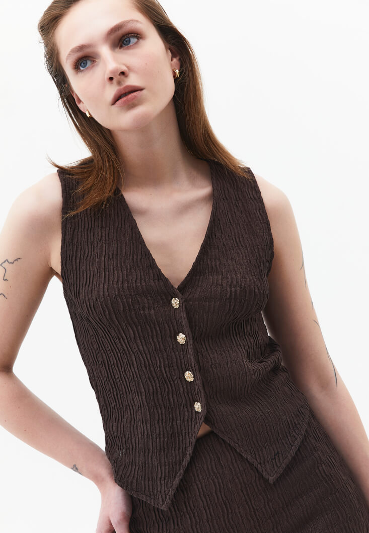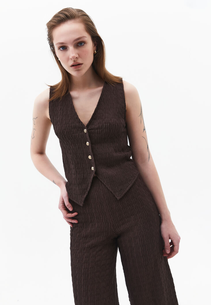 • Bayan Kahverengi Dokulu V Yaka Yelek