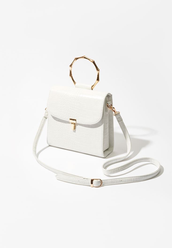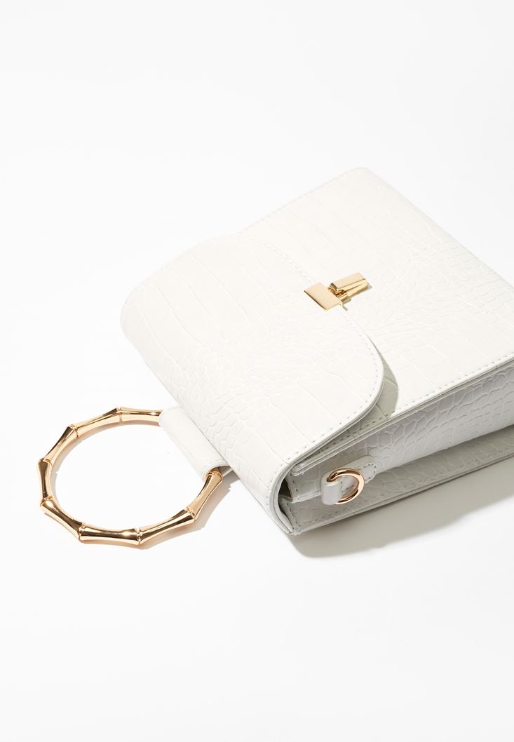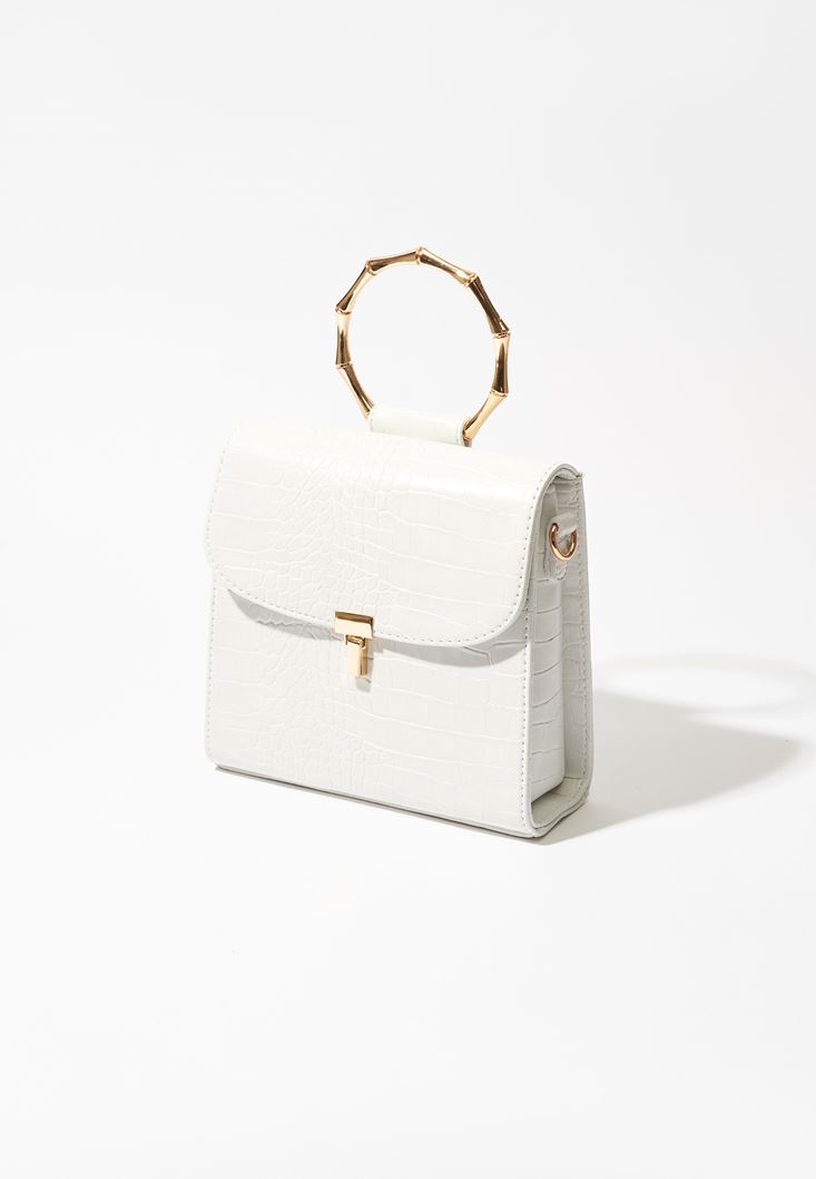 • Bayan Beyaz Dokulu Vegan Deri Çanta