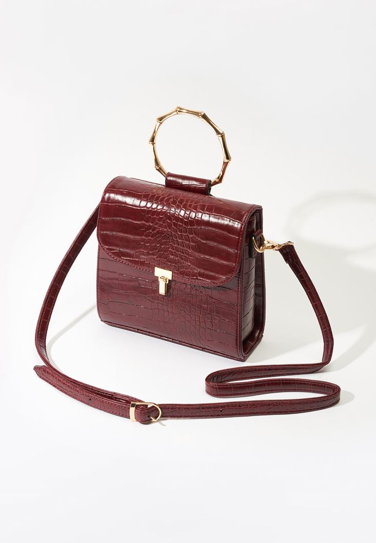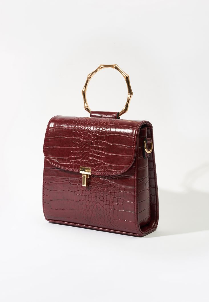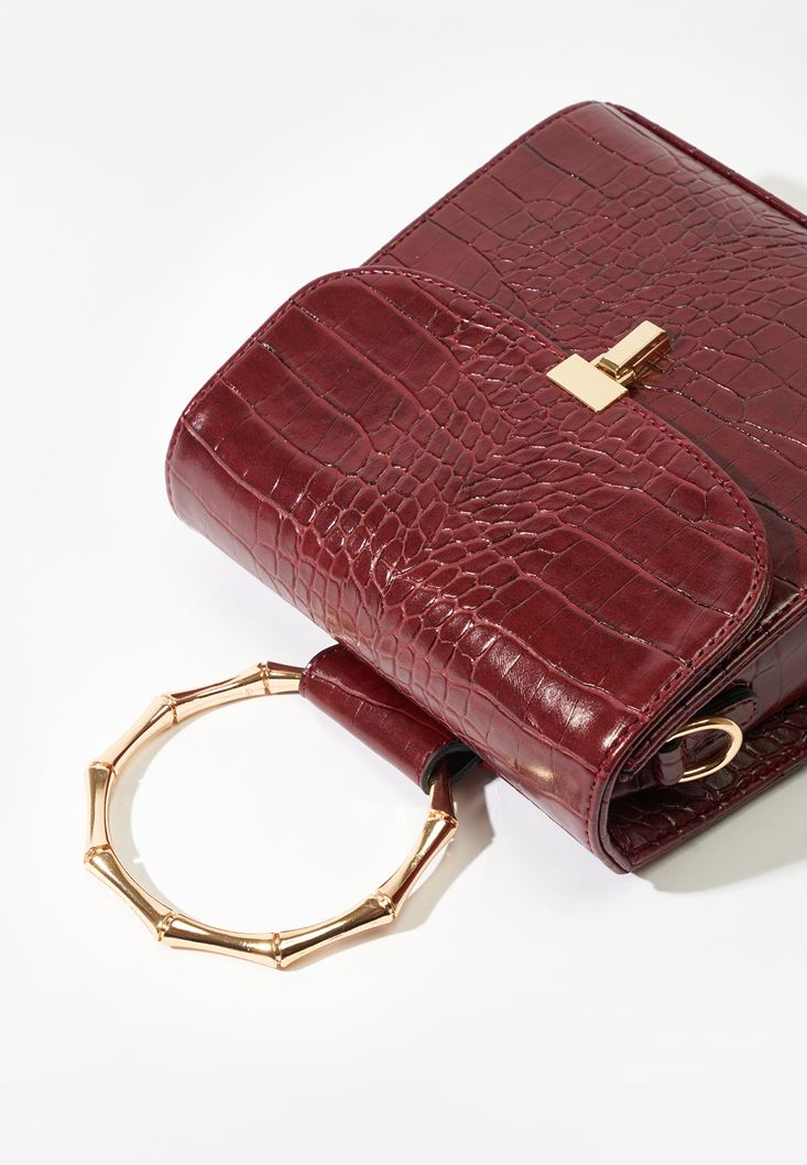 Bordo Dokulu Vegan Deri Çanta