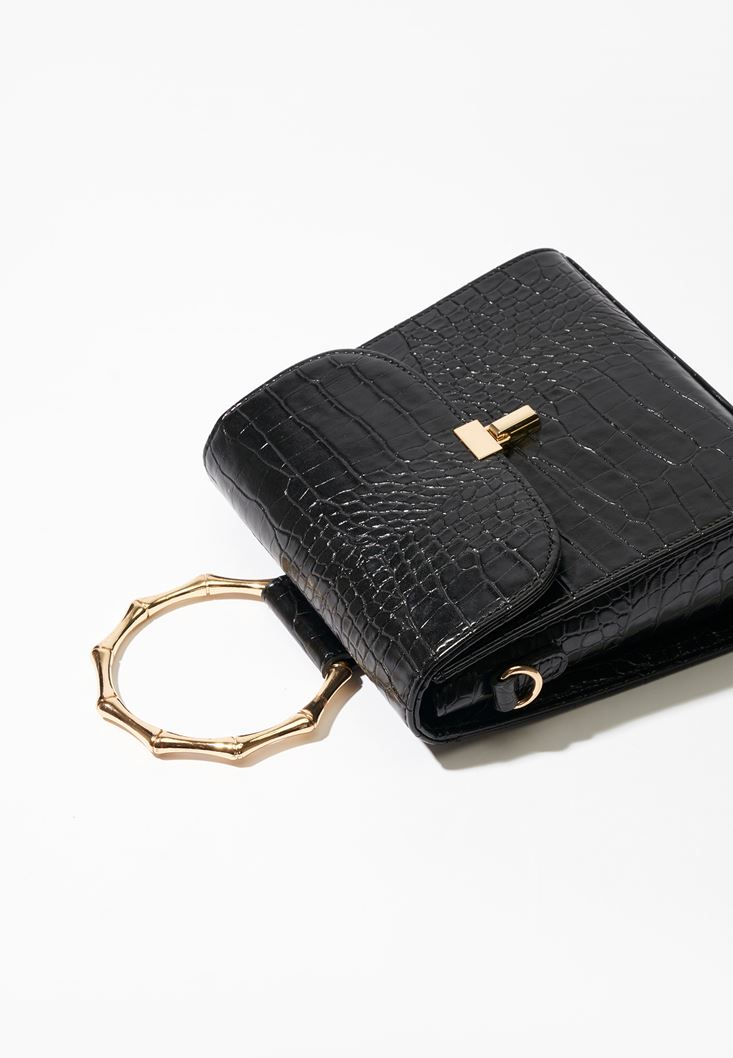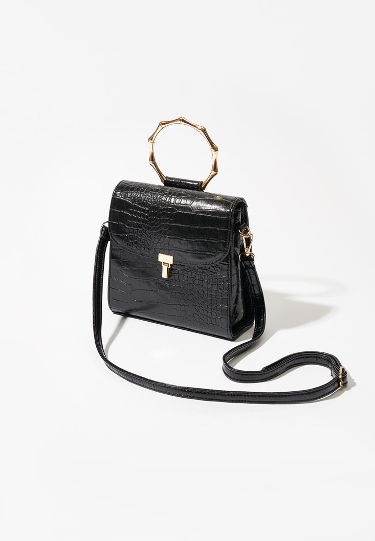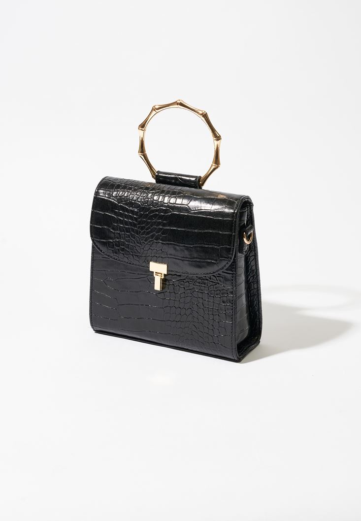 • Bayan Siyah Dokulu Vegan Deri Çanta