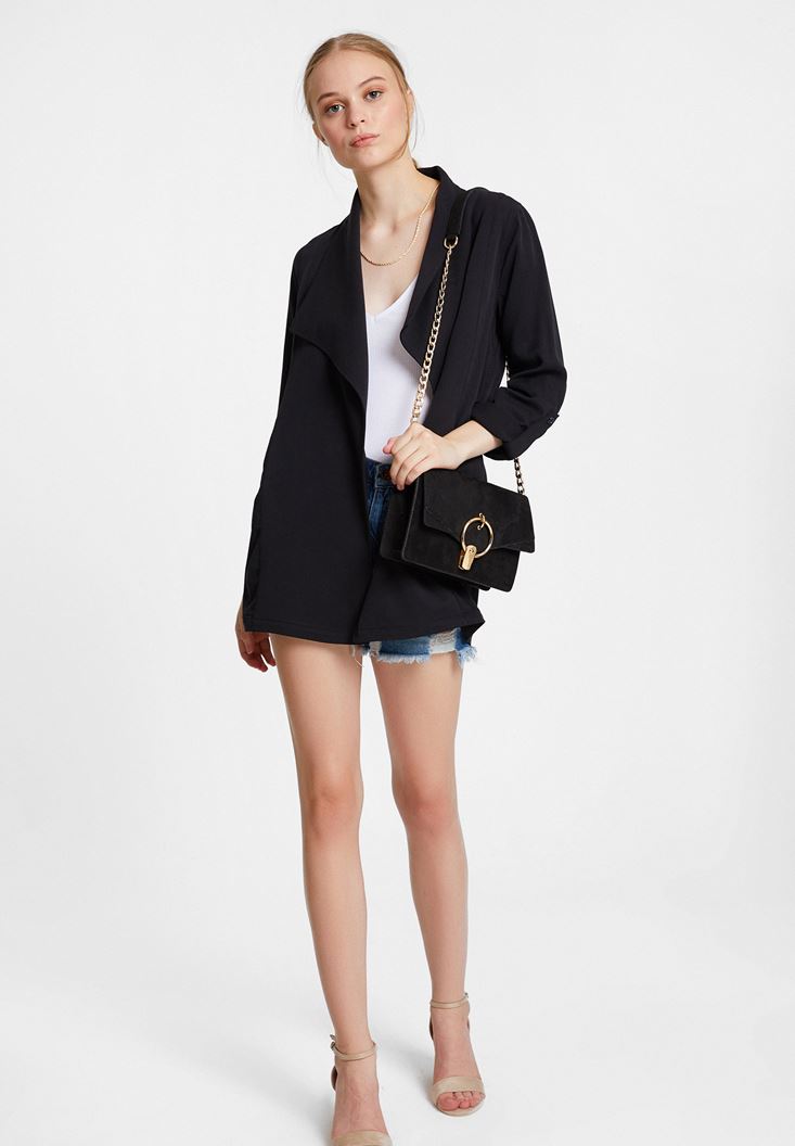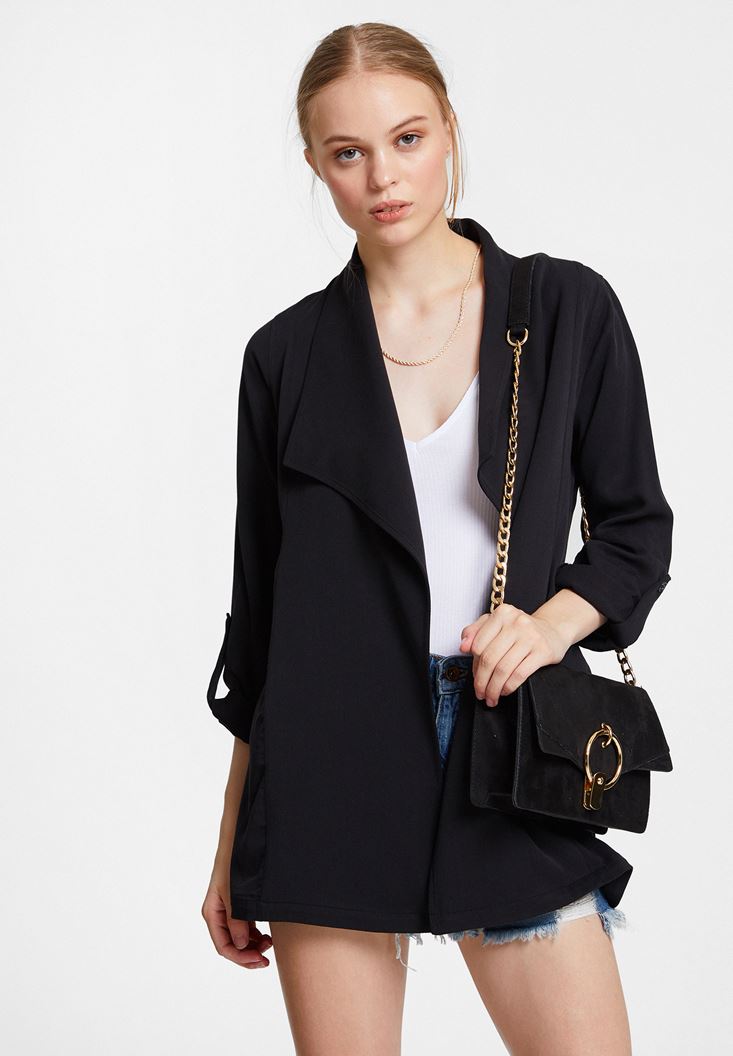 • Bayan Siyah Dökümlü Cupro Blazer Ceket ( TENCEL™ )