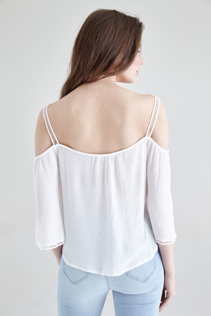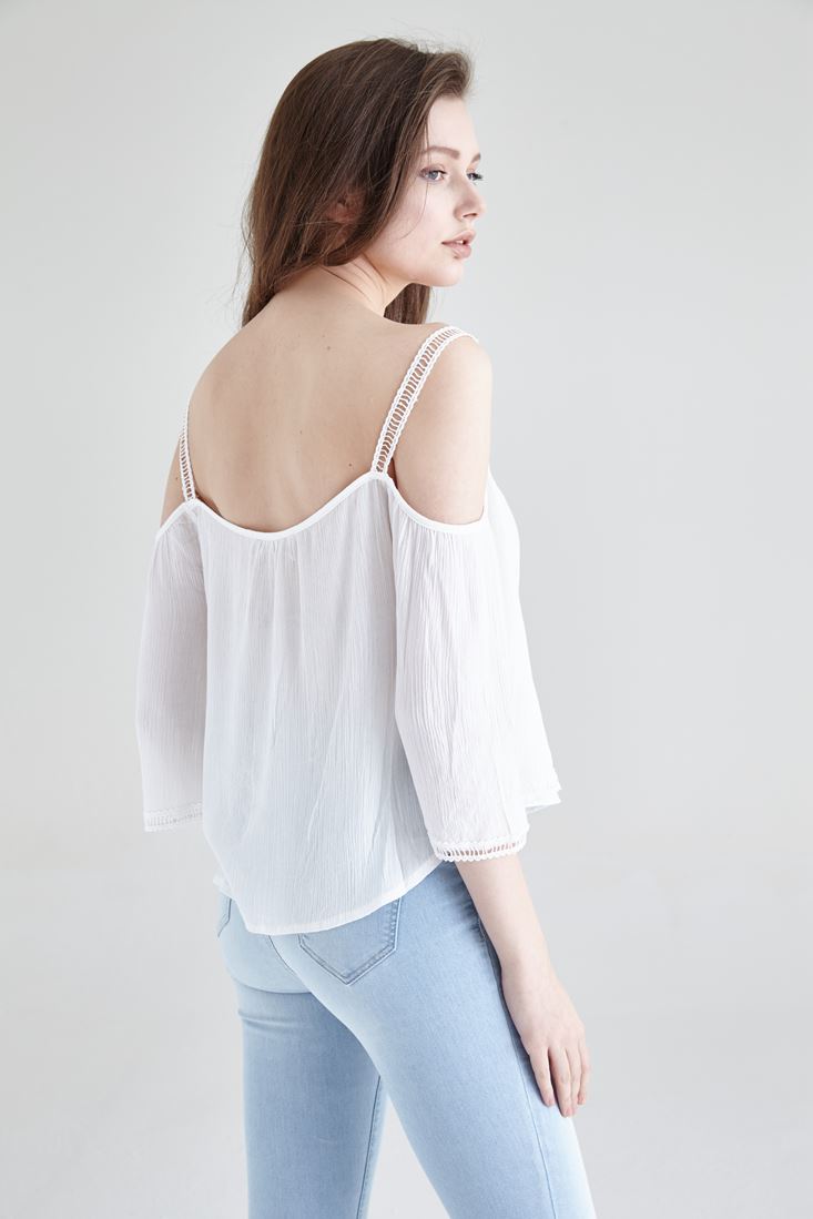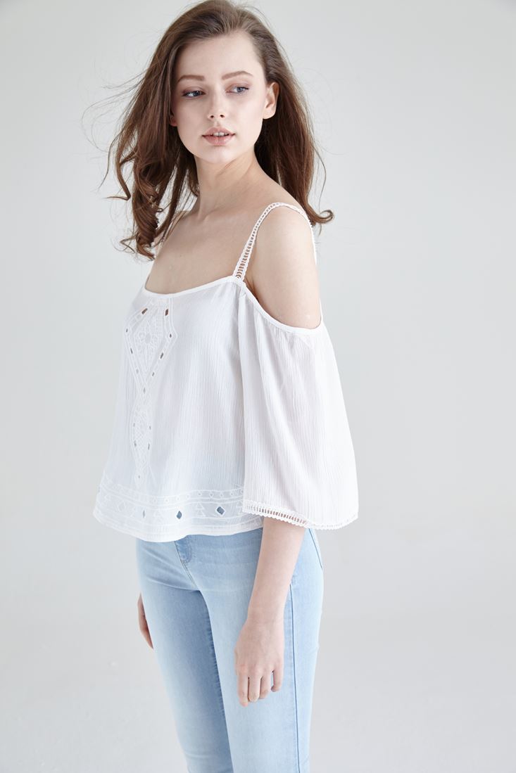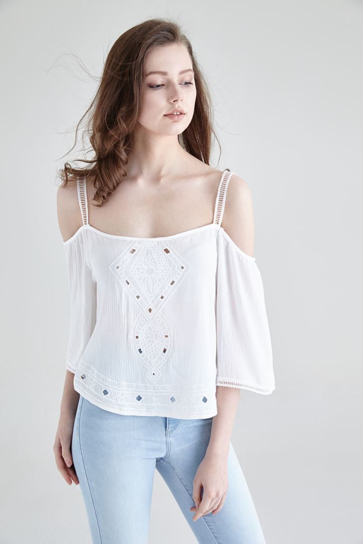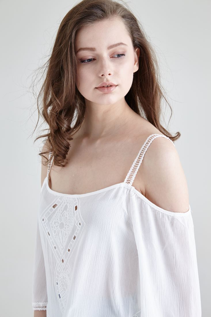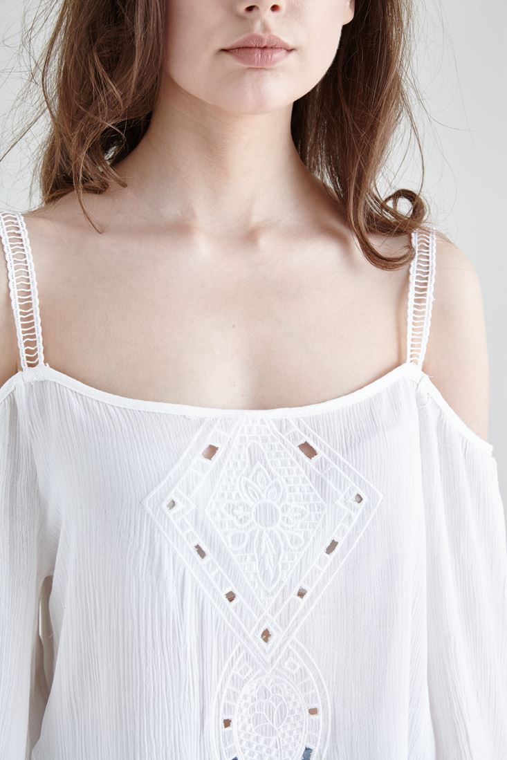 • Bayan Krem Dökümlü Delik Detaylı Bluz