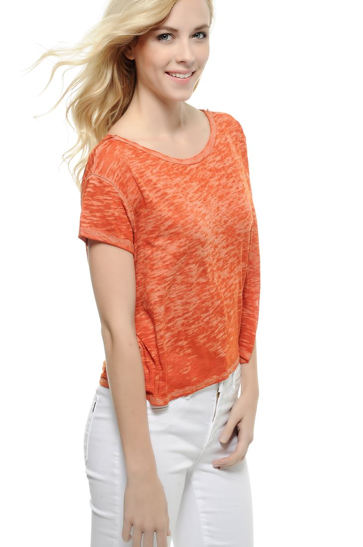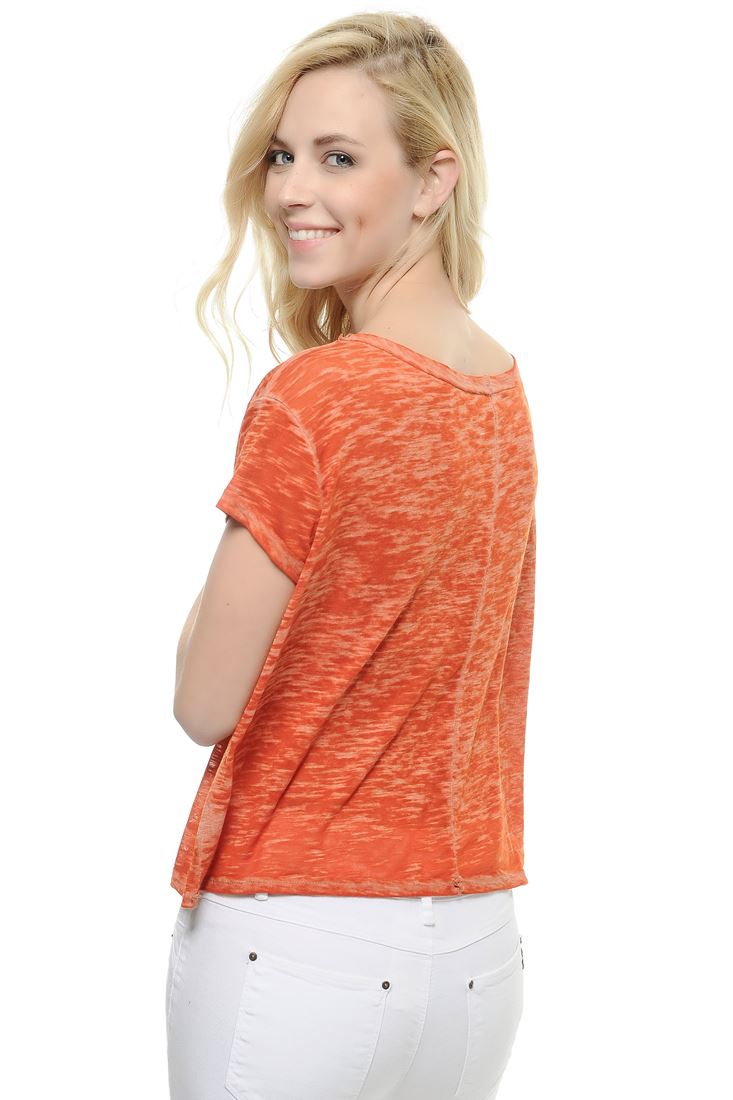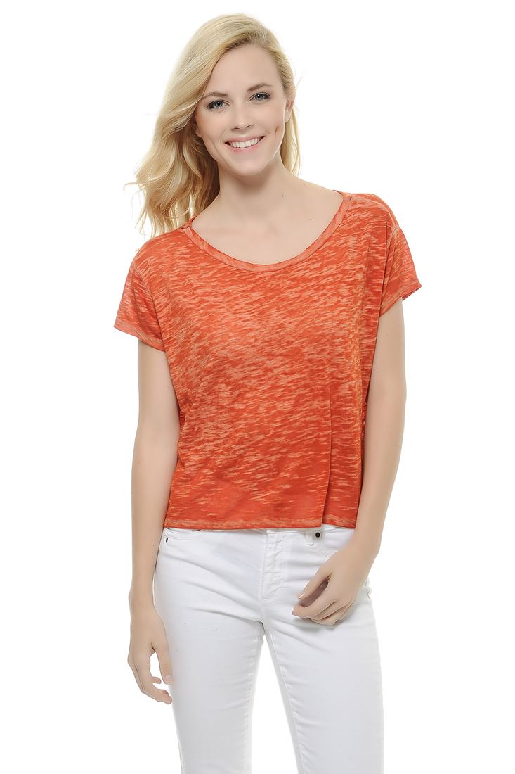 • Bayan Turuncu Dökümlü Kısa Tişört