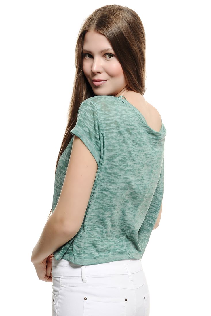 • Bayan Yeşil Dökümlü Kısa Tişört