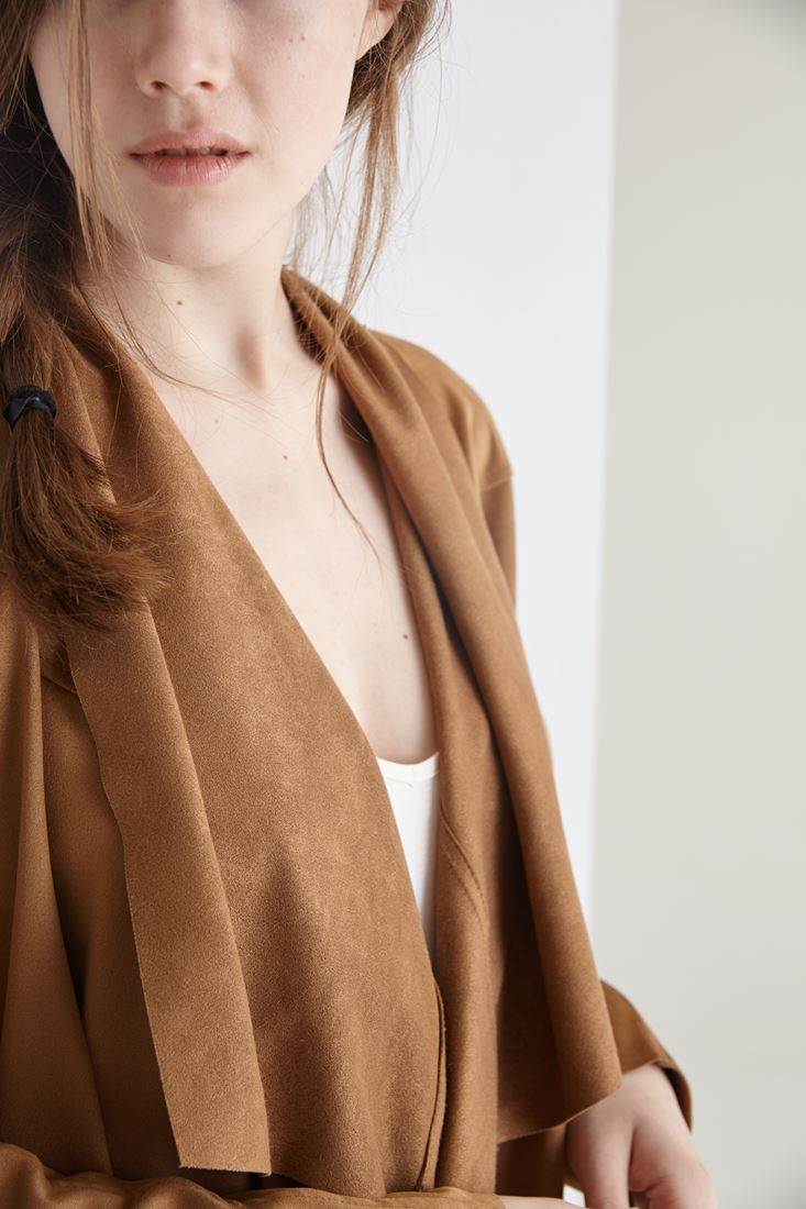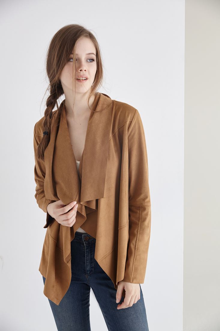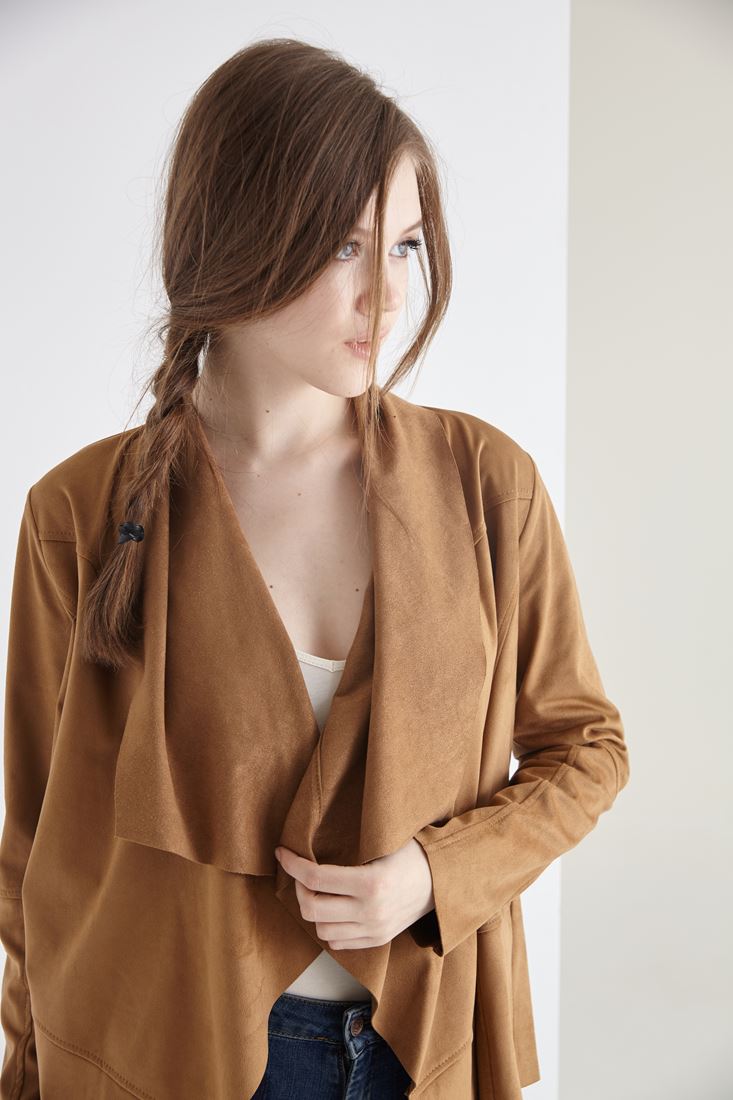 • Bayan Kahverengi Dökümlü Süet Görünümlü Ceket