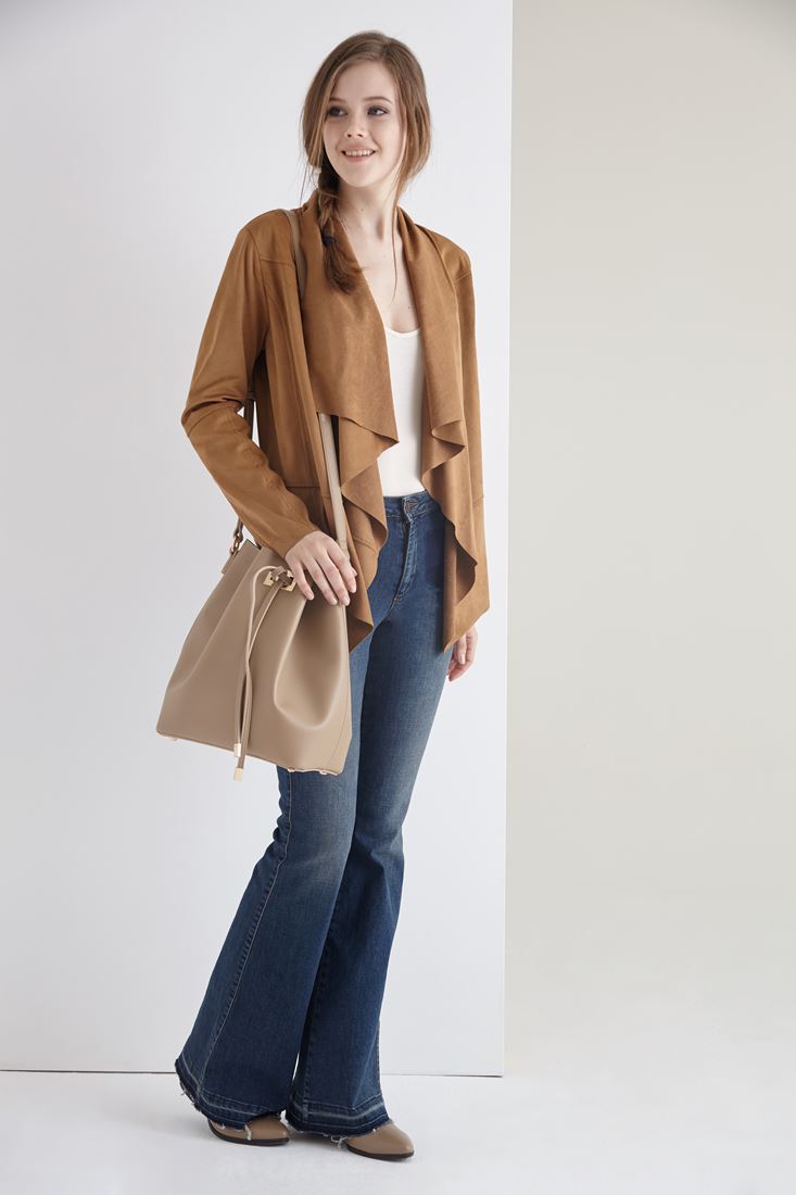 Süet görünümlü dökümlü ceketler geçen sezon oldugu gibi bu sezonda çok moda. Bahar kombinlerinin anahtar parçalarindan olan süet ceketleri skinny jeanler ve kisa botlarla kombinleyebilirsiniz.