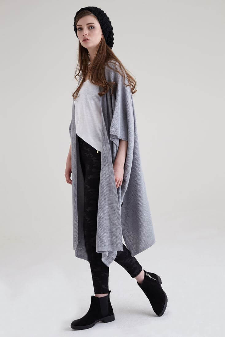Gri Dökümlü Uzun Hırka