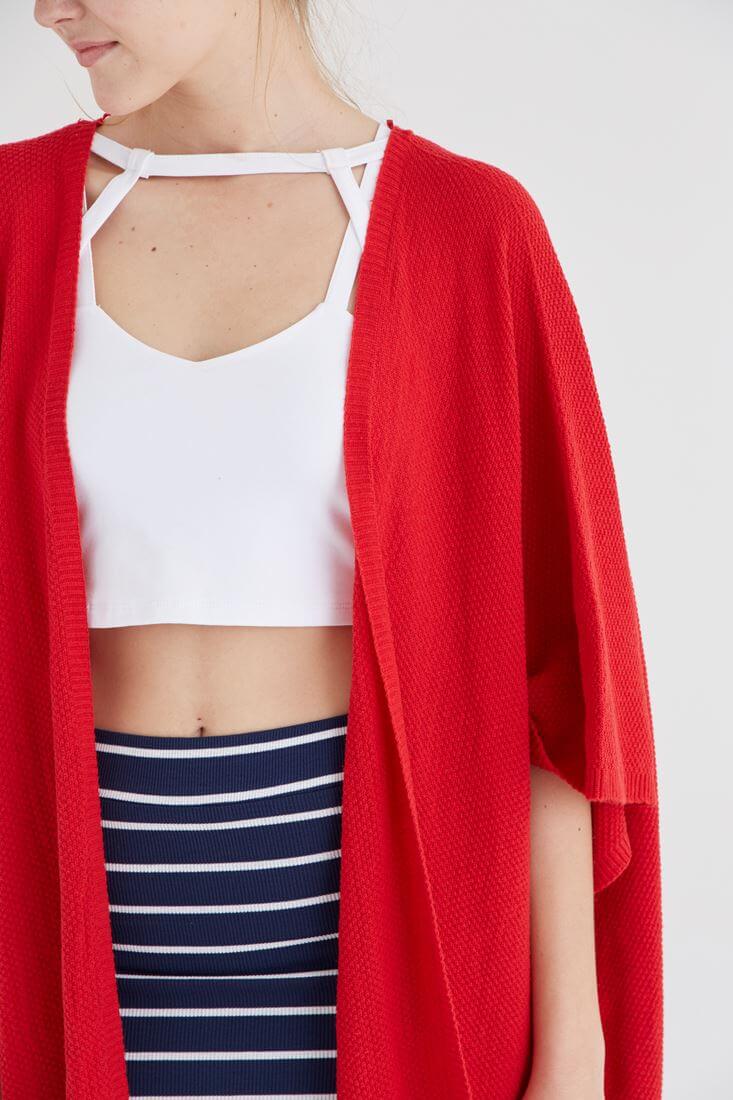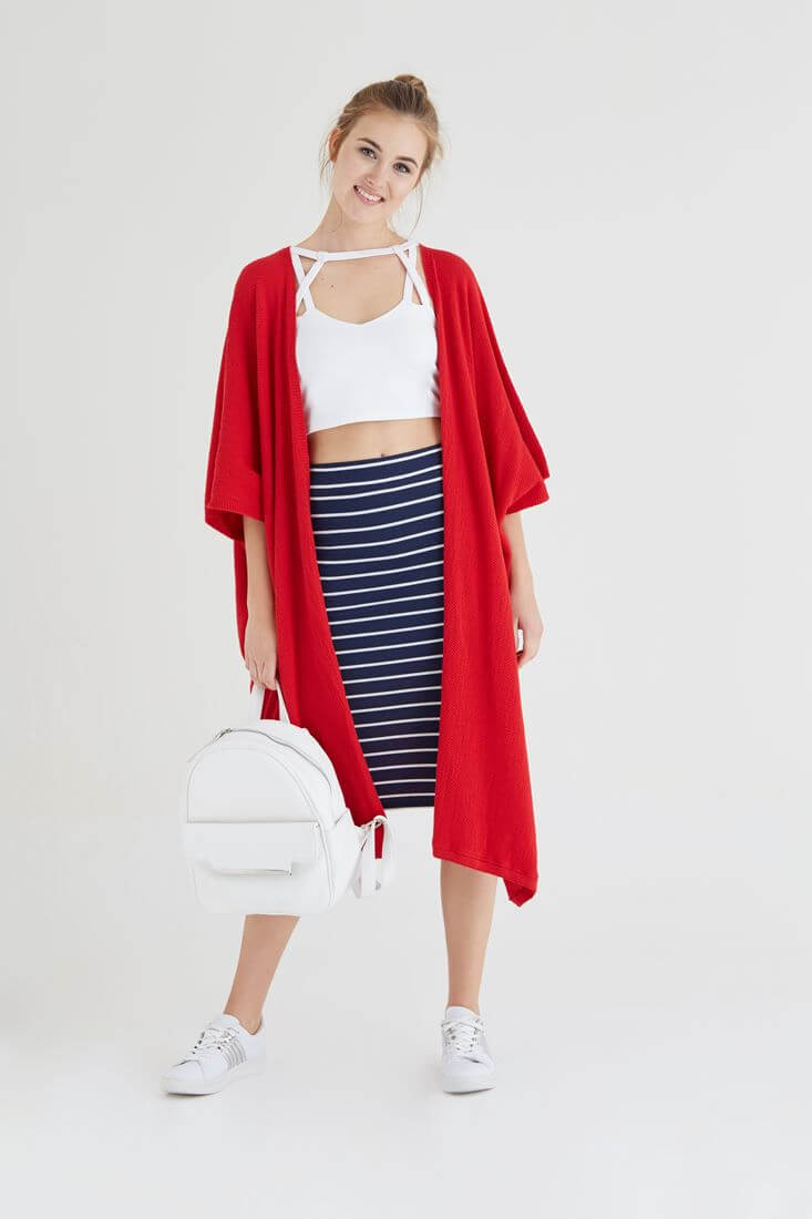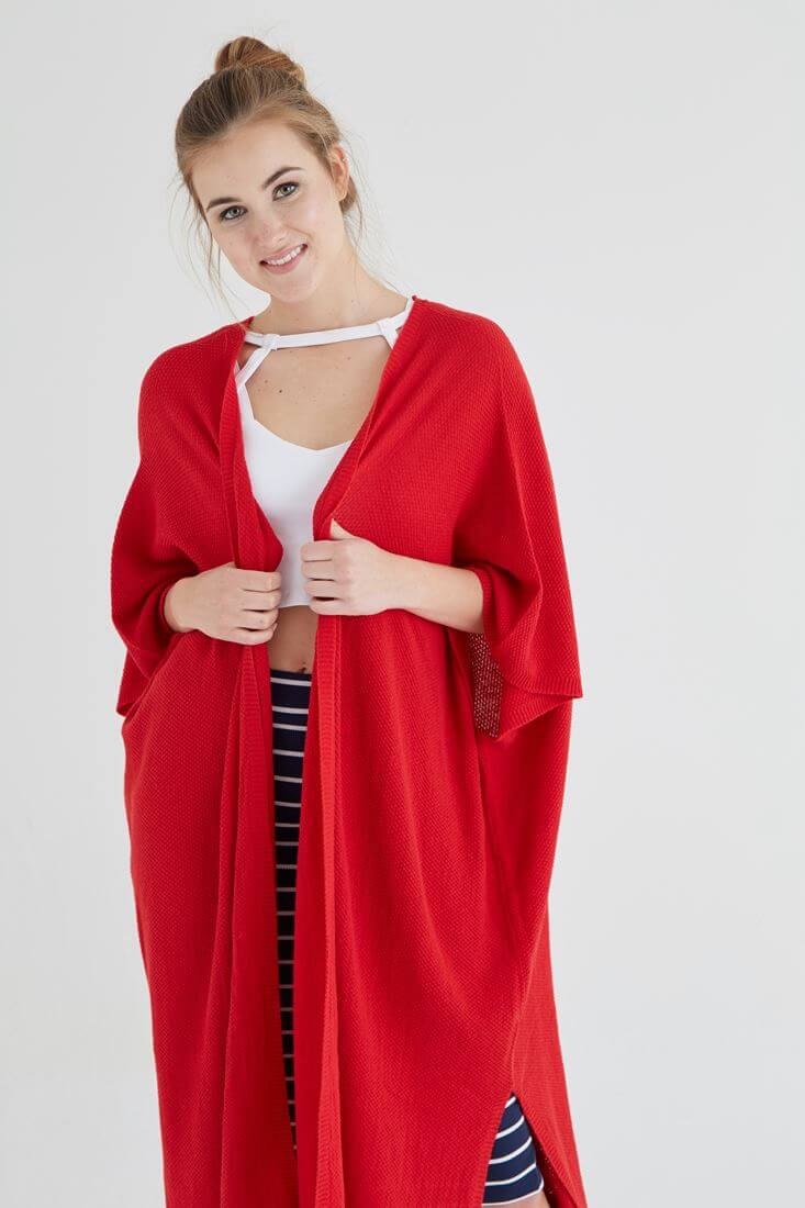 • Bayan Kırmızı Dökümlü Uzun Hırka