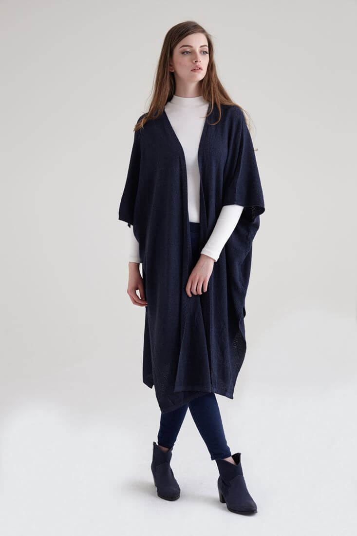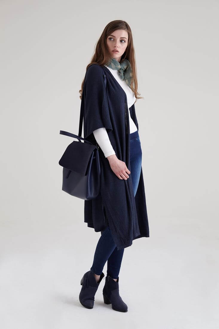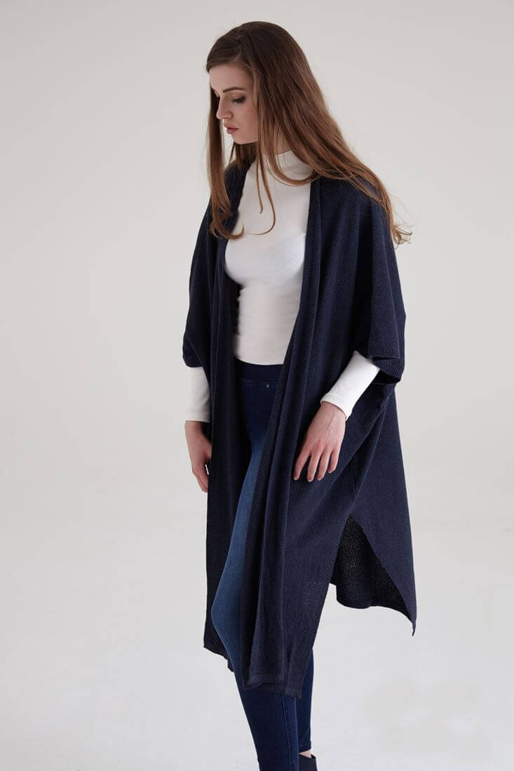 • Bayan Lacivert Dökümlü Uzun Hırka