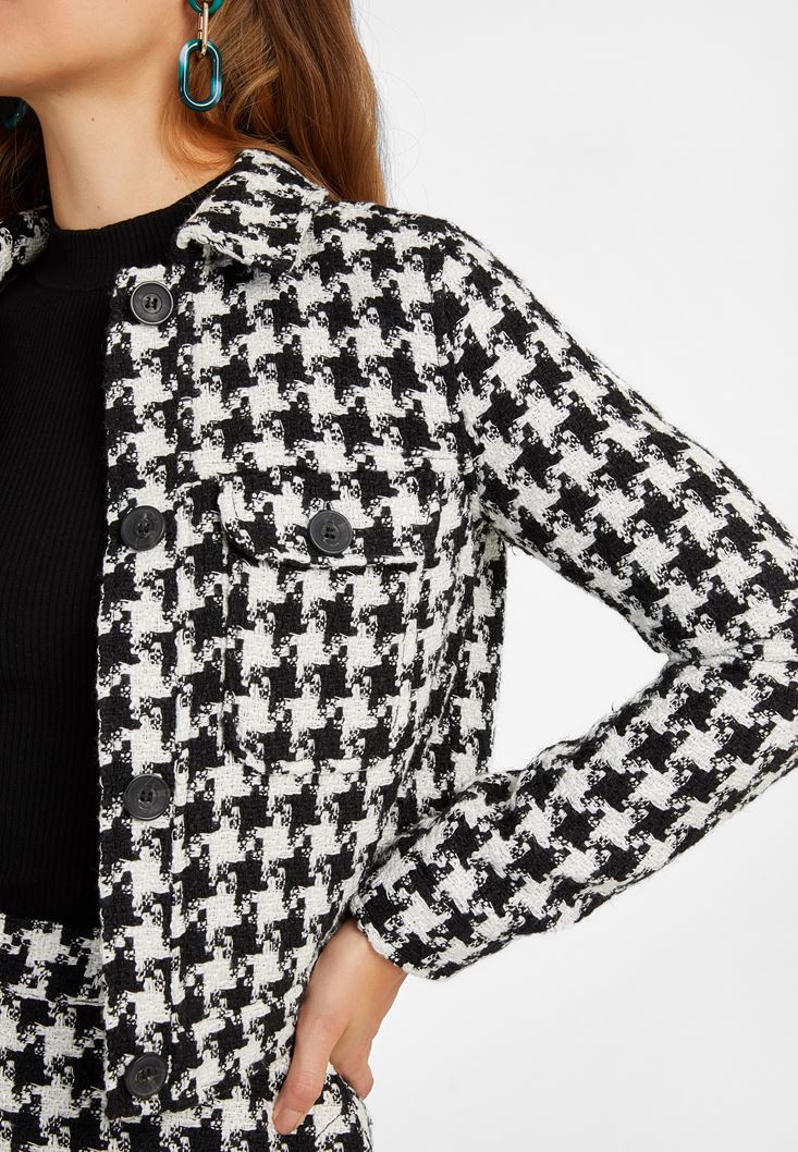 Düğme Detaylı Biker Ceket modeli, pamuk ve viskon içerikli hoş dokusu ile Oxxo'da sizlere sunuluyor. kadın ceket modeli, kaz ayağı desenli kumaşı ve crop kesimi ile göz alıcı detayları sizlerle buluşturuyor. Kadın ceket modeli, ön kısmında bulunan cep detayları ve düğmeli görünümü ile yeni sezonda dikkat çekiyor. Mini eteklerle veya elbiselerle kullanabileceğiniz kadın ceket modelini bir an önce dolabınıza dahil edebilirsiniz. Kadın ceket modelini tercih edeceğiniz kombinlere topuklu ayakkabıları veya uzun çizmeleri ekleyebilirsiniz. Oxxo'nun göz alıcı desenlerle ve hoş ayrıntılarla sizlere sunduğu kadın ceket modelleri ile tarzınızı moda dünyasına uyumlu hale getirebilirsiniz.
