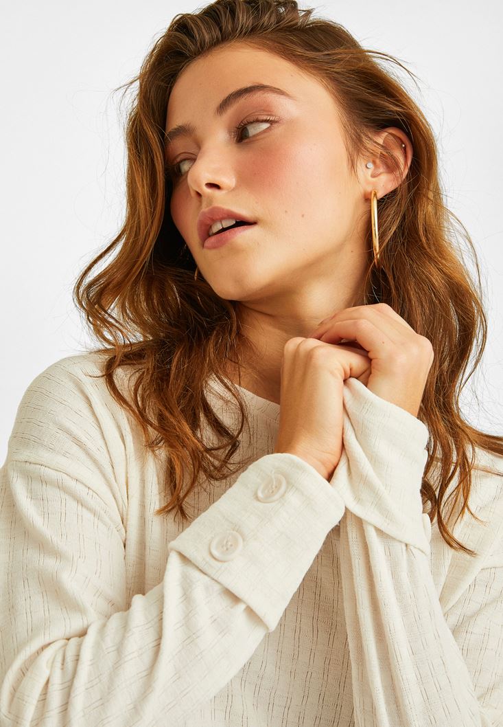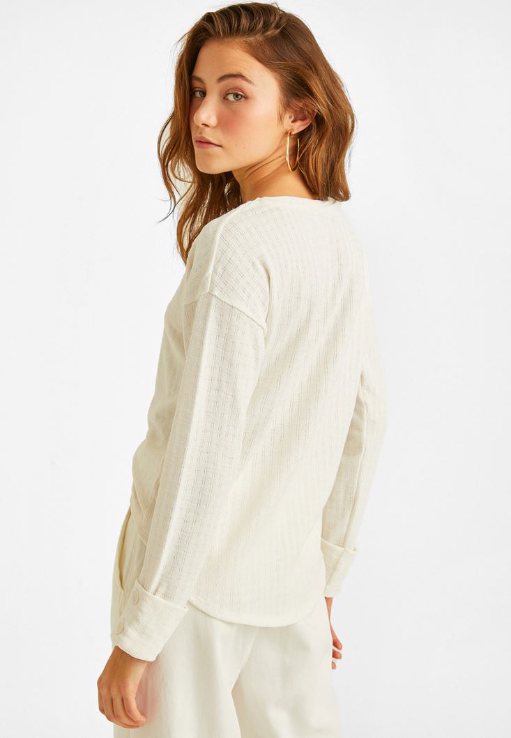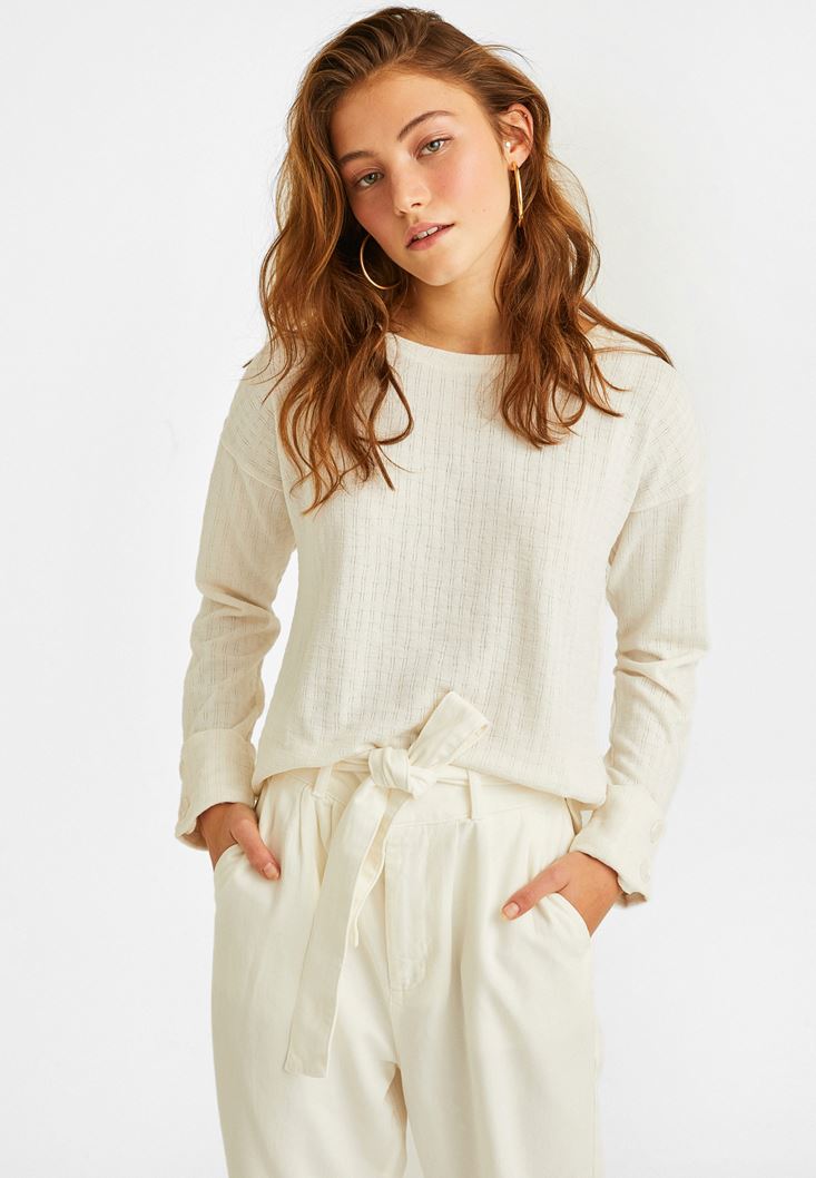 Düğme Detaylı Bluz modeli, dokulu kumaşı ve canlı görünümü ile Oxxo'da sizlere sunuluyor. Kadın bluz modeli, bisiklet yaka kesimi ve katlamalı kol detayında yer alan düğmeleri ile yeni sezonda fark yaratıyor. Uzun kollu bluz modeli, hafif bol kesimi ile günlük kombinlerinize rahatlık katabileceğiniz bir parça olarak sizlerle buluşuyor. Yüksek belli pantolonlarla veya mini eteklerle kullanabileceğiniz kadın bluz modelini gardırobunuza dahil edebilirsiniz. Uzun kollu bluz modeli ile kürk ceketler veya kaşe kabanlar tercih ederek dış giyimde de şıklığı yakalayabilirsiniz. Oxxo'nun farklı detaylarla ve dikkat çeken dokularla sizlere sunduğu uzun kollu bluz modelleri ile kombinlerinize canlılık katabilirsiniz.