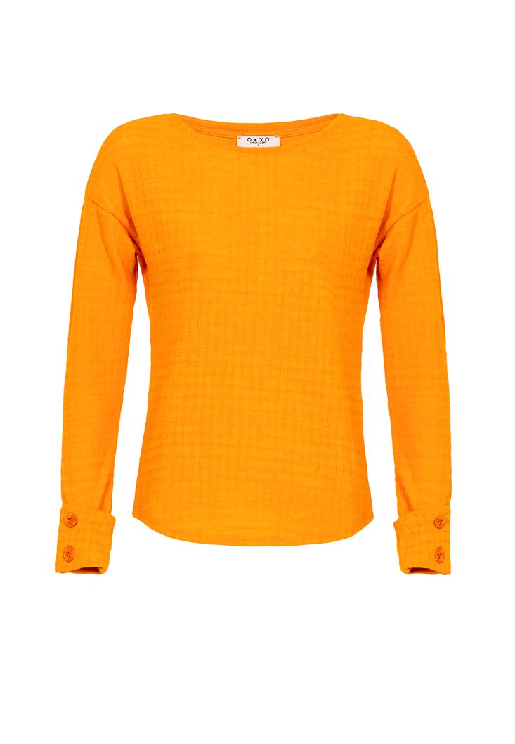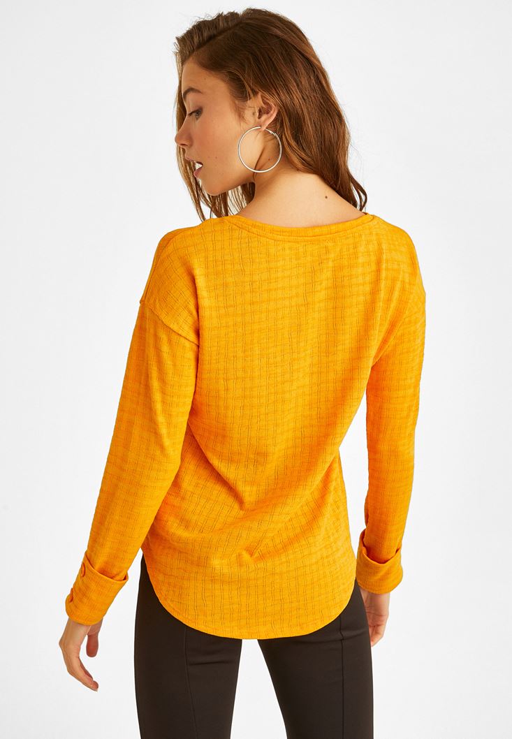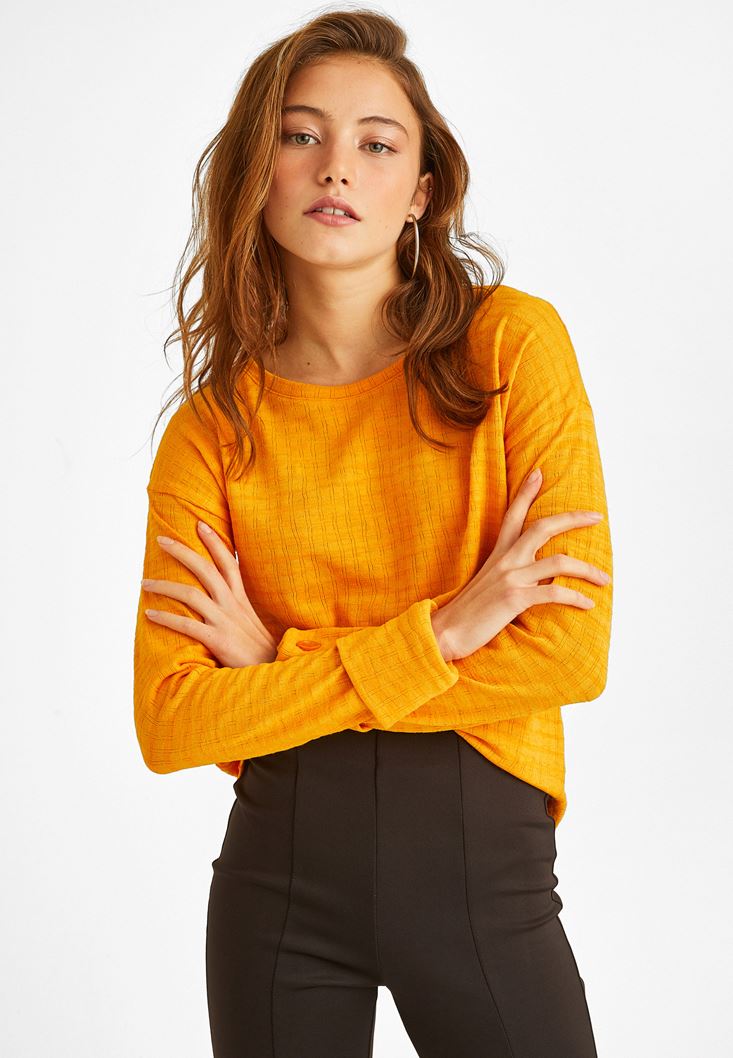 Düğme Detaylı Bluz modeli, dokulu kumaşı ve canlı görünümü ile Oxxo'da sizlere sunuluyor. Kadın bluz modeli, bisiklet yaka kesimi ve katlamalı kol detayında yer alan düğmeleri ile yeni sezonda fark yaratıyor. Uzun kollu bluz modeli, hafif bol kesimi ile günlük kombinlerinize rahatlık katabileceğiniz bir parça olarak sizlerle buluşuyor. Yüksek belli pantolonlarla veya mini eteklerle kullanabileceğiniz kadın bluz modelini gardırobunuza dahil edebilirsiniz. Uzun kollu bluz modeli ile kürk ceketler veya kaşe kabanlar tercih ederek dış giyimde de şıklığı yakalayabilirsiniz. Oxxo'nun farklı detaylarla ve dikkat çeken dokularla sizlere sunduğu uzun kollu bluz modelleri ile kombinlerinize canlılık katabilirsiniz.