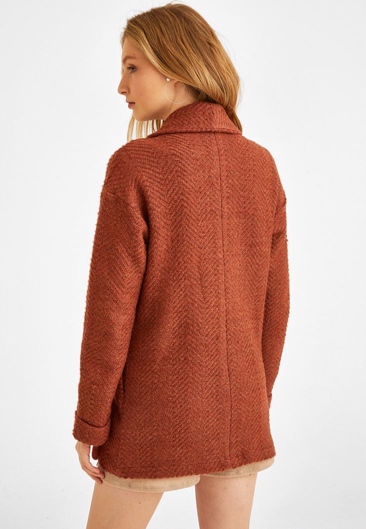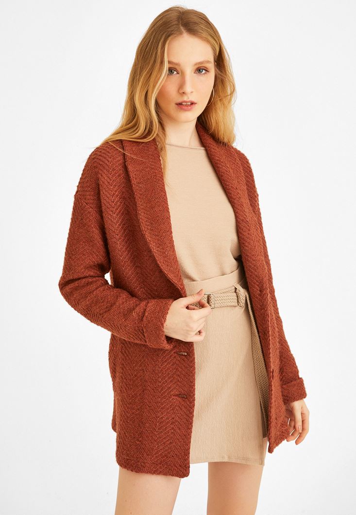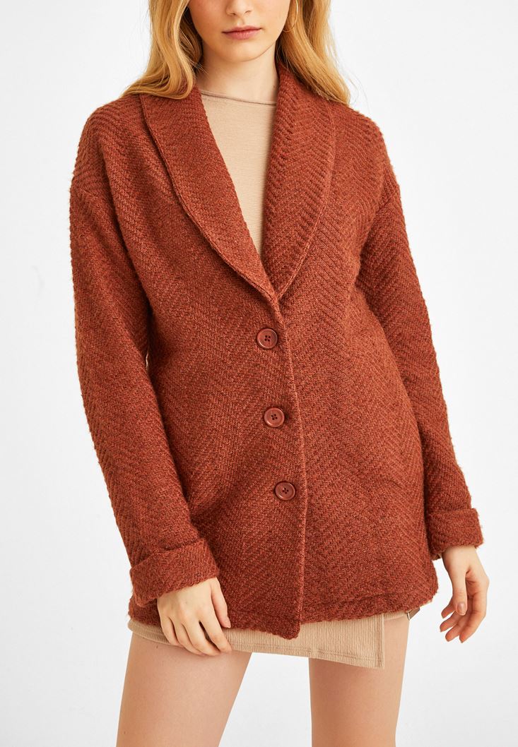• Bayan Kahverengi Düğme Detaylı Ceket