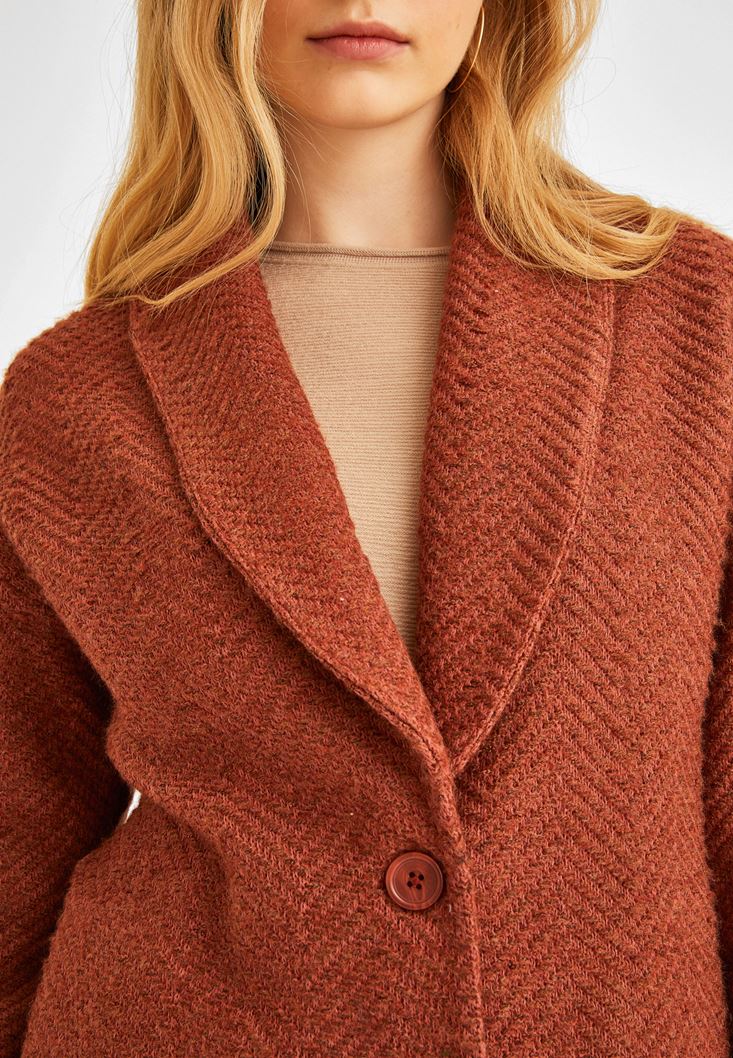 Düğme Detaylı Ceket modeli, pamuk içerikli dokusu ve geniş kalıbı ile yeni sezonda sizlerle buluşuyor. Kadın ceket modeli, ön kısmında yer alan düğmeleriyle ve katlamalı kol detayıyla Oxxo'da sizlere sunuluyor. Kadın ceket modeli, kalın yapısı ve zigzag desenli görünümü ile tarzınıza dahil olmak için hazır görünüyor. Elbiselerle ve mini eteklerle kullanabileceğiniz kadın ceket modelini yeni sezonda dolabınıza dahil edebilirsiniz. Kadın ceket modeli ile triko kazakları ve pantolonları bir araya getirerek de harikalar yaratabilirsiniz. Oxxo'nun sıcaklık veren dokularla ve benzersiz detaylarla sizlere sunduğu kadın ceket modelleri ile stilinizi dilediğiniz gibi şekillendirebilirsiniz.