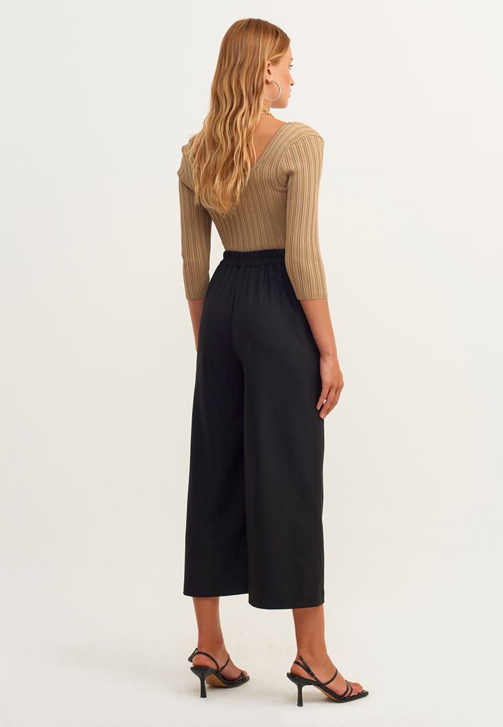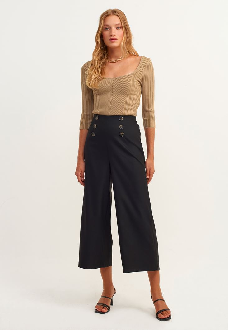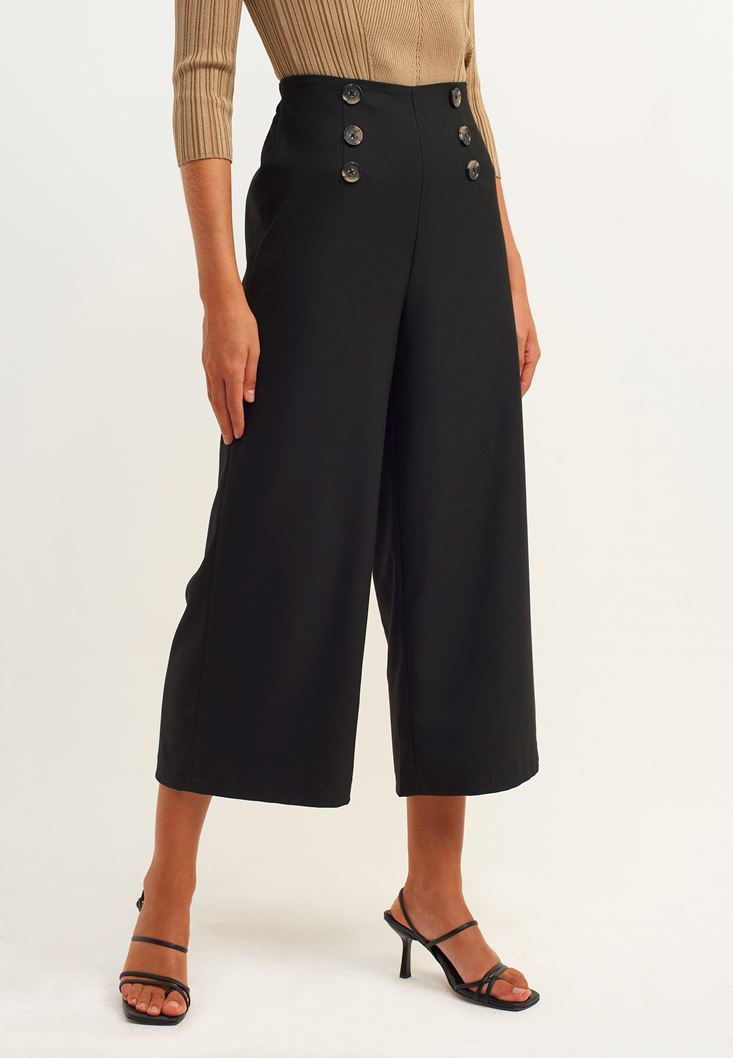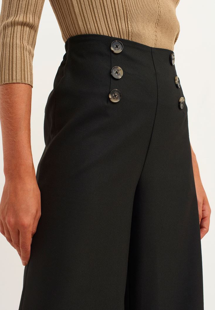 • Bayan Siyah Düğme Detaylı Culotte Pantolon