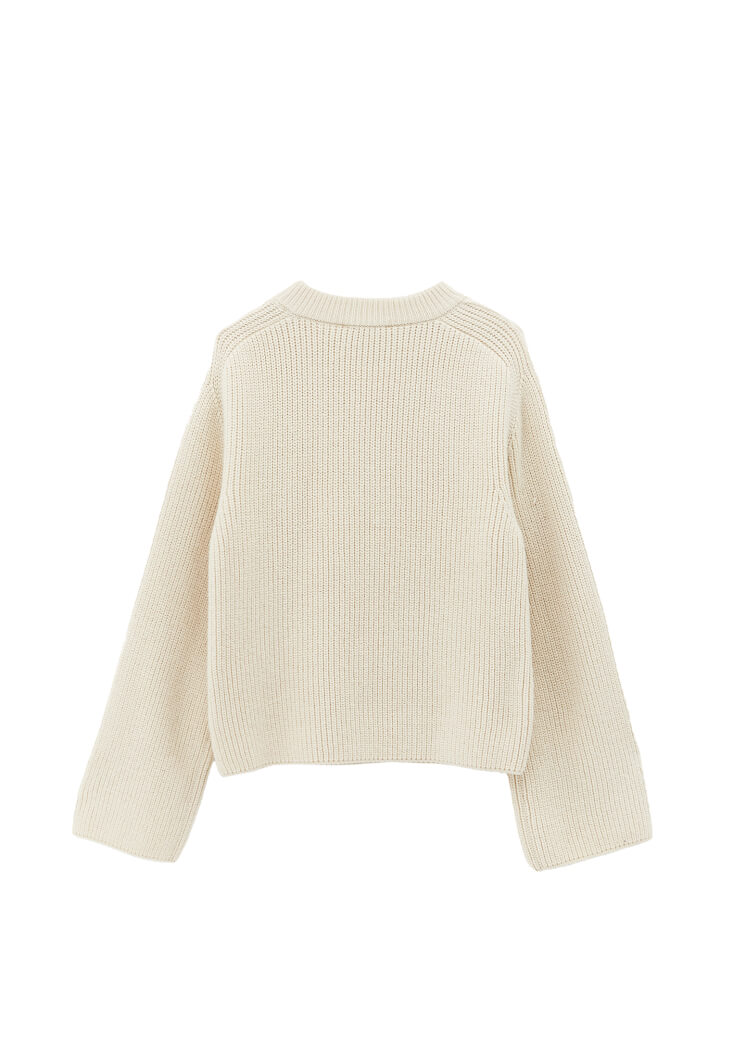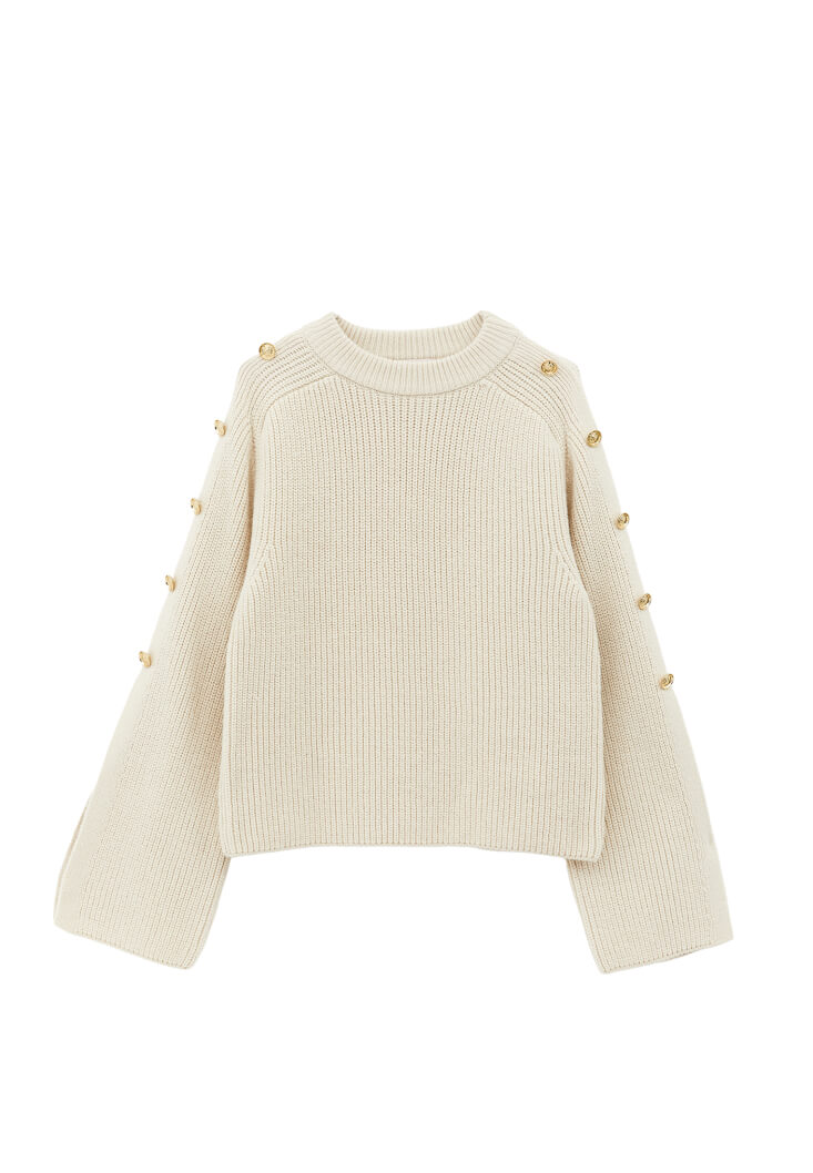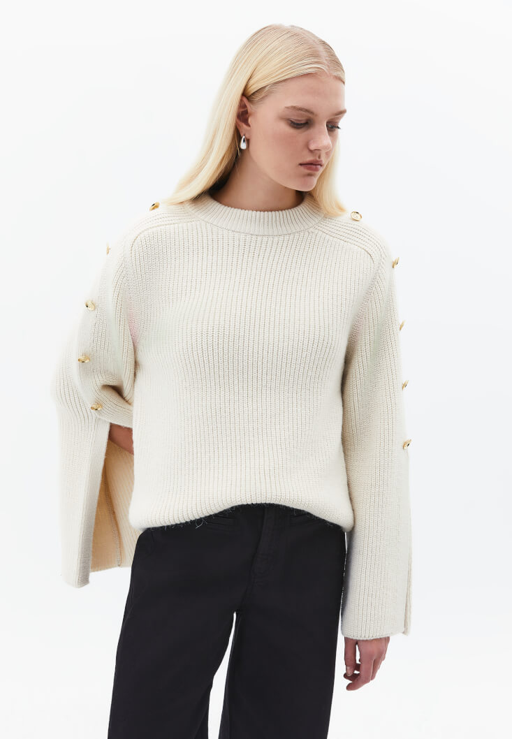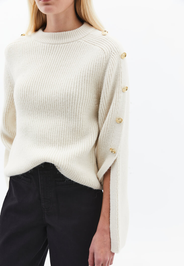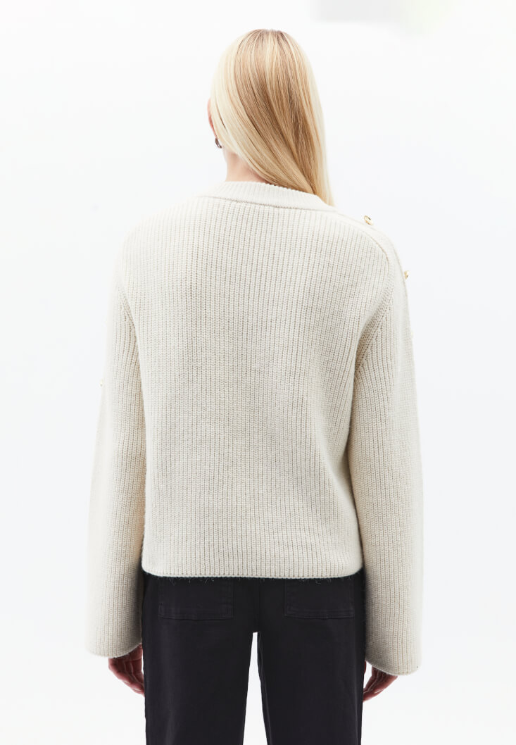 Krem Düğme Detaylı Kazak