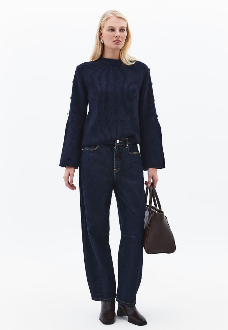 • Bayan Lacivert Düğme Detaylı Kazak
