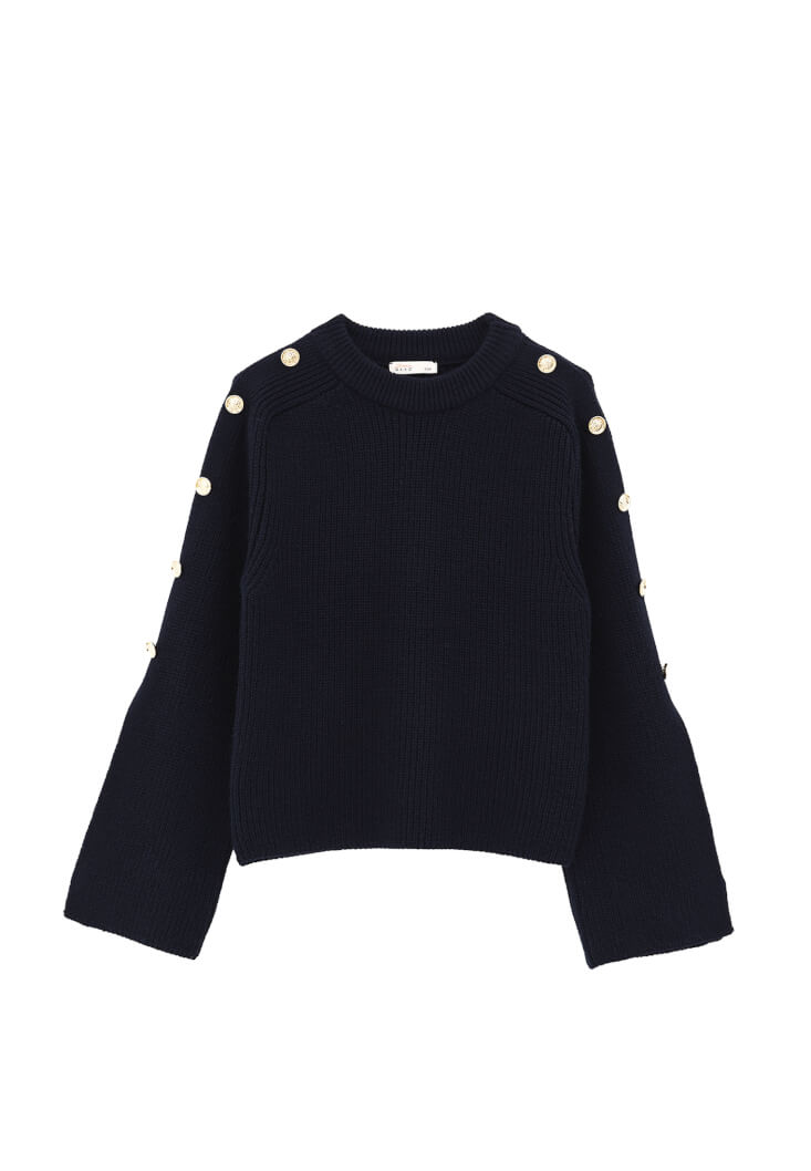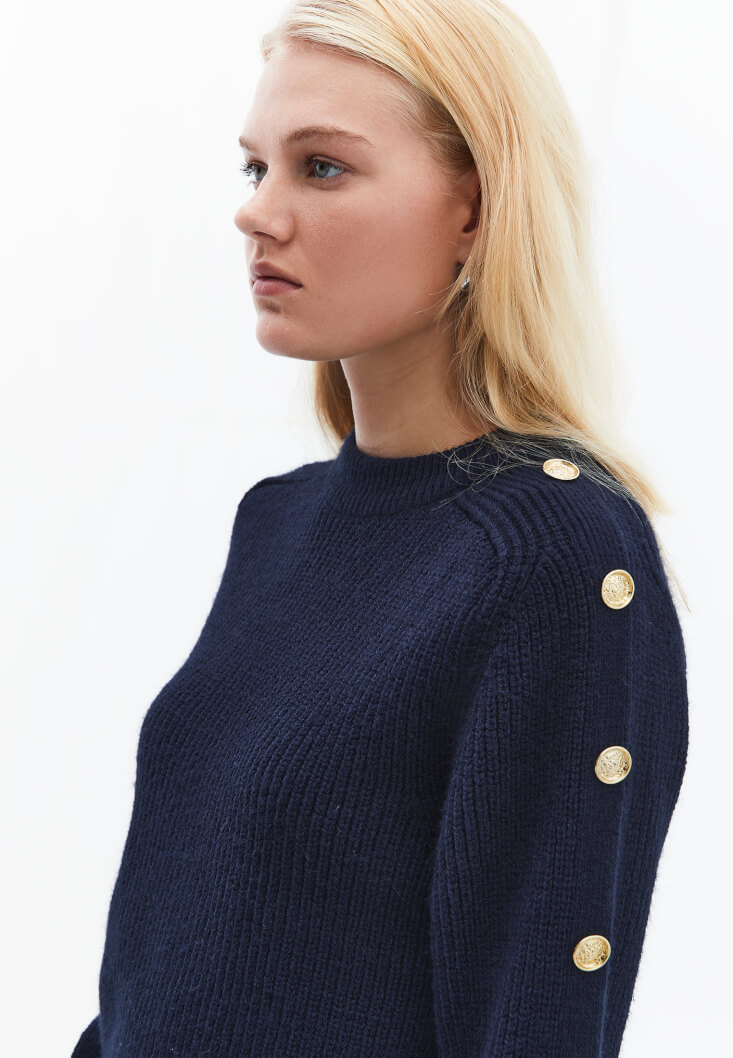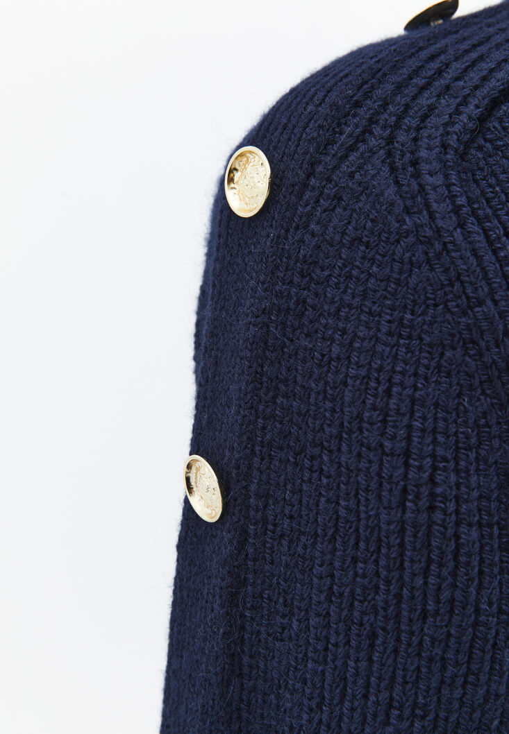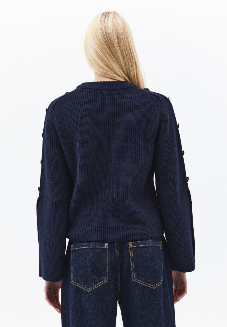 Lacivert Düğme Detaylı Kazak