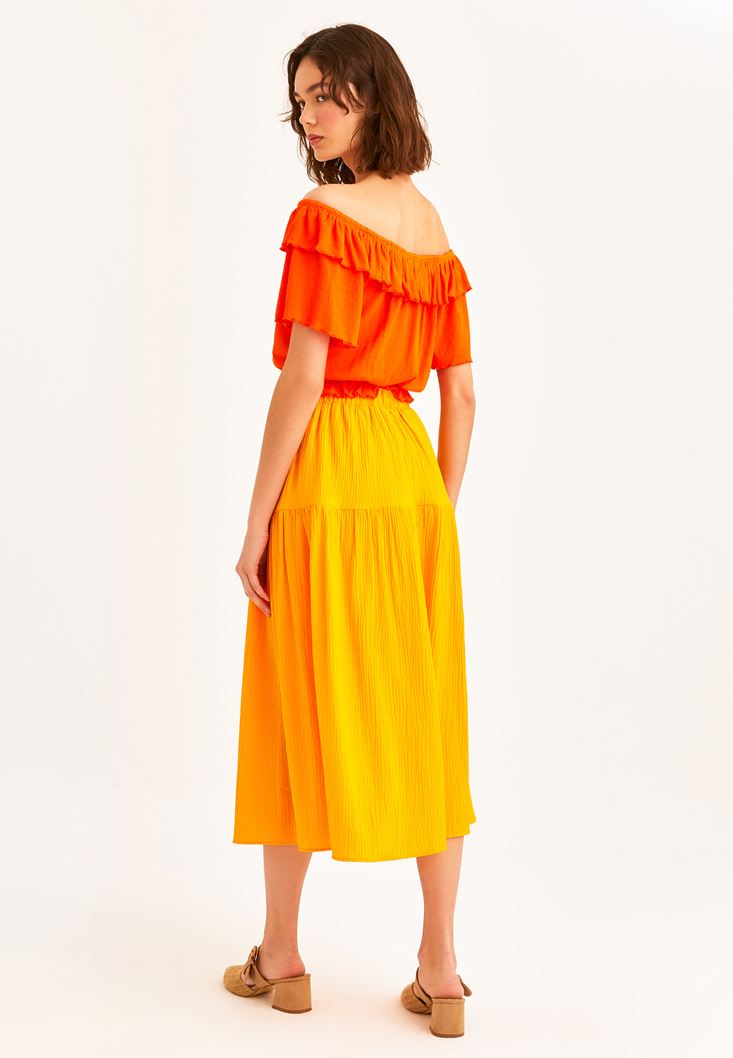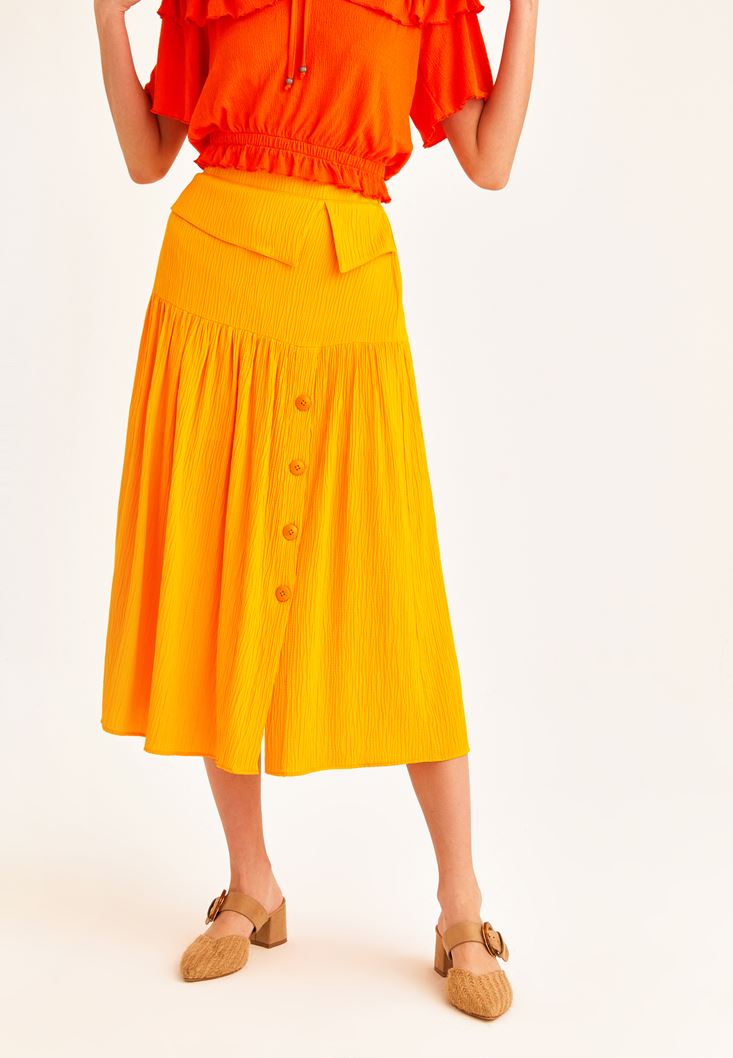 • Bayan Sarı Düğme Detaylı Midi Boy Etek