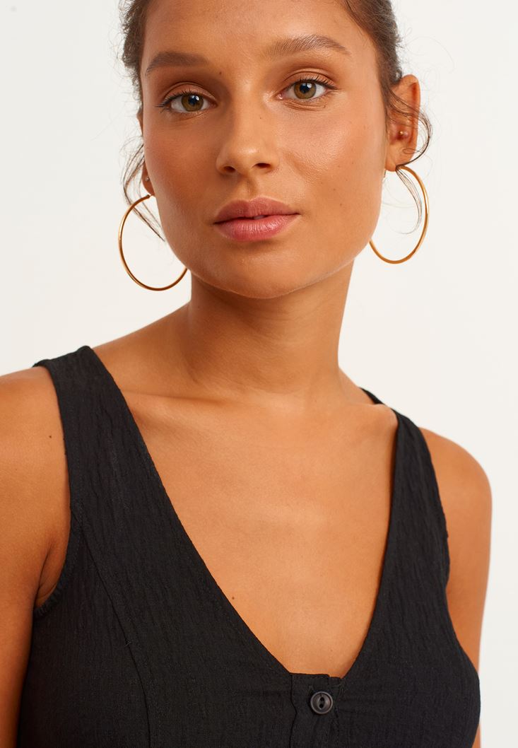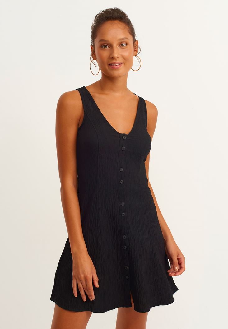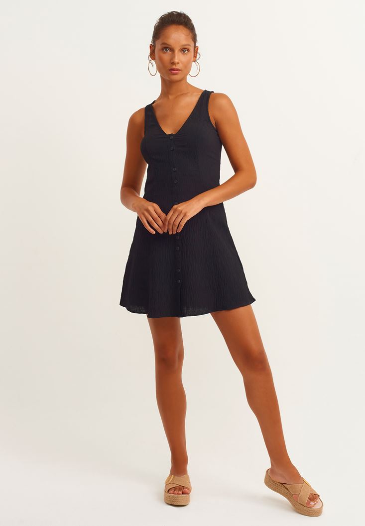 • Bayan Siyah Düğme Detaylı Mini Elbise