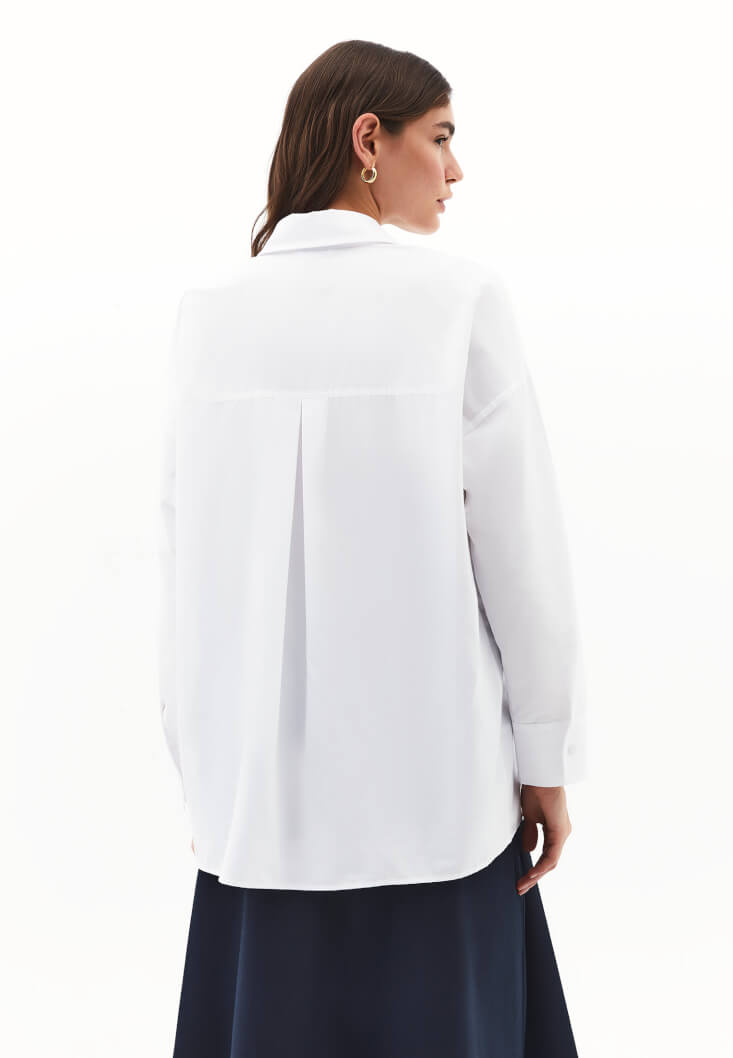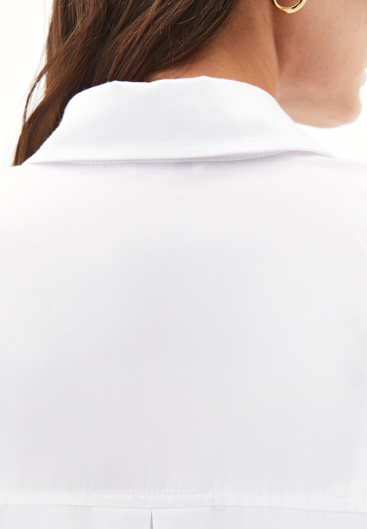 Beyaz Düğme Detaylı Poplin Gömlek