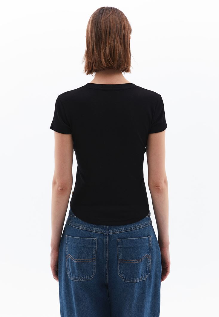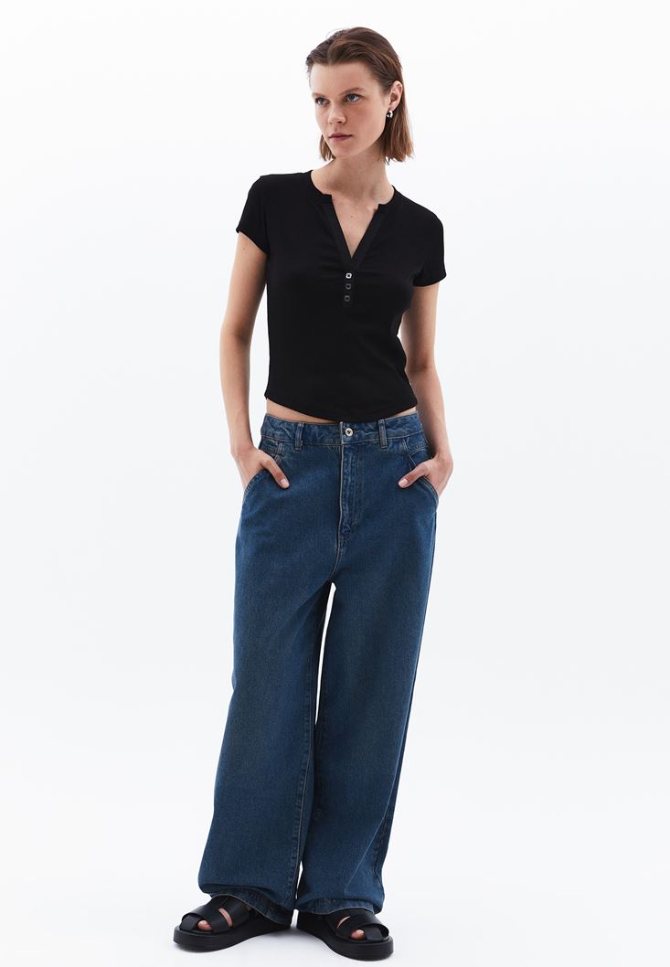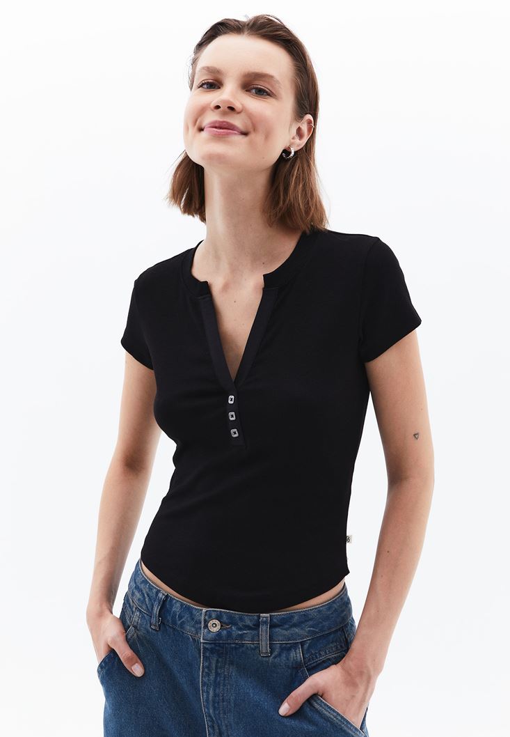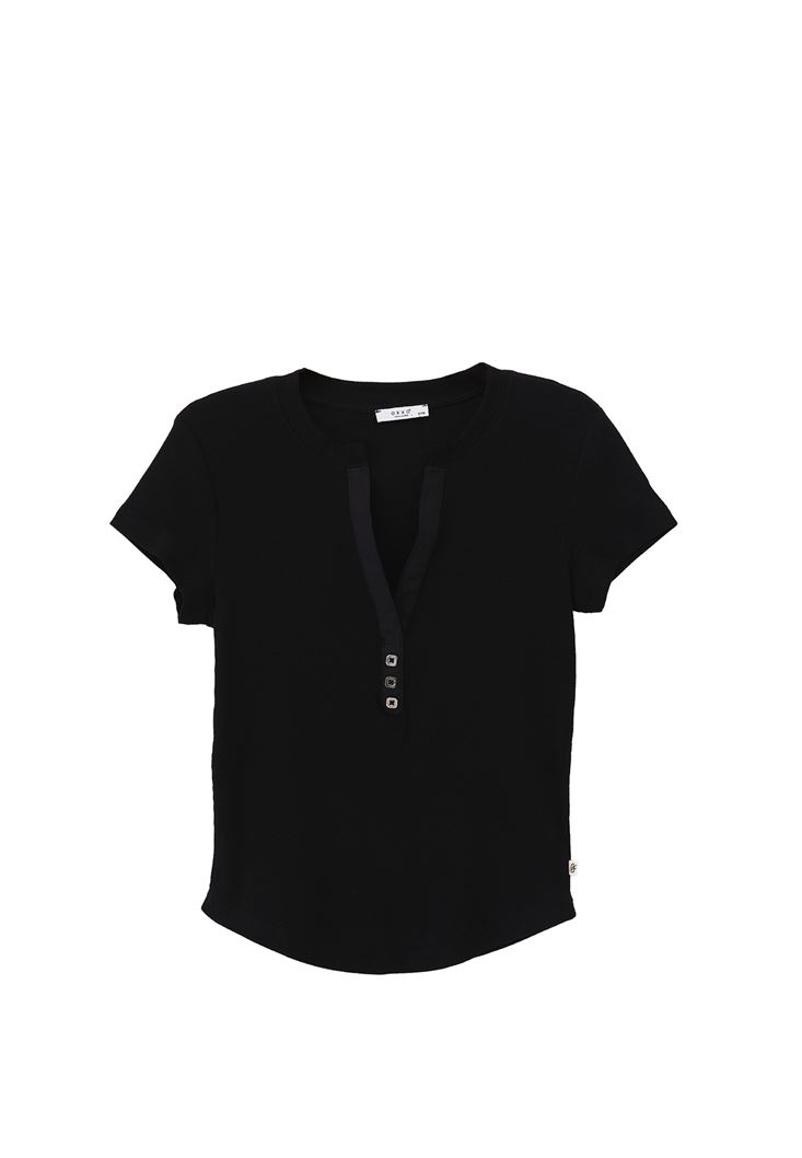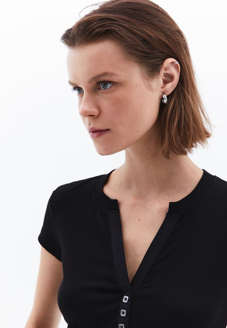 Siyah Düğme Detaylı Tişört ( MODAL )