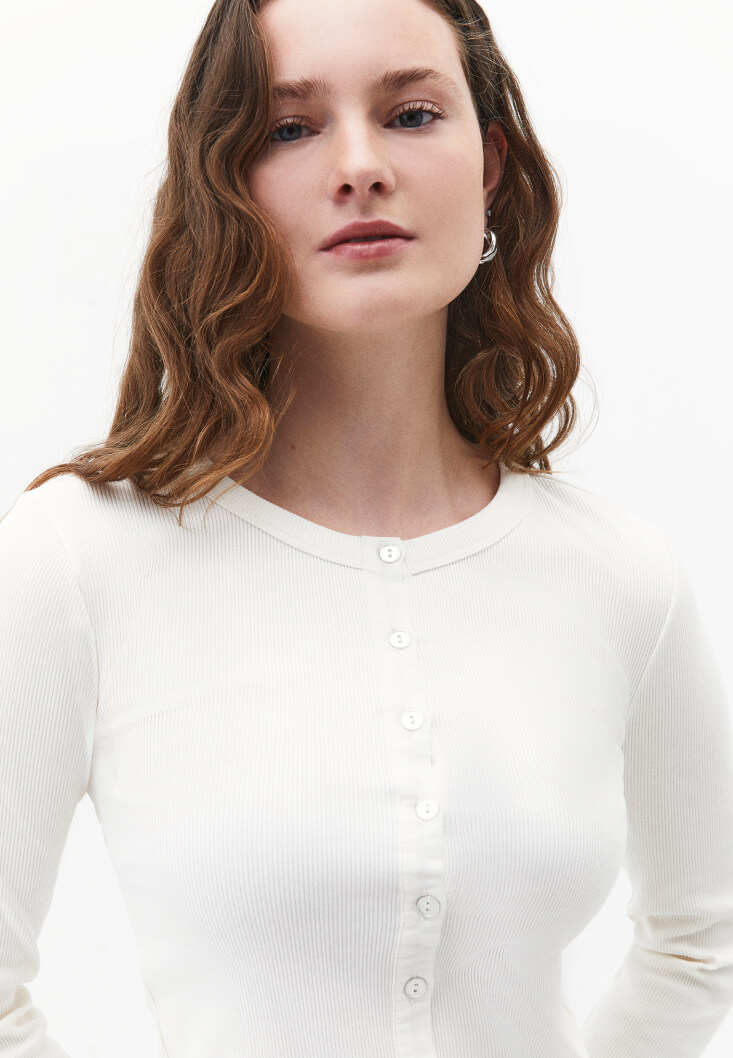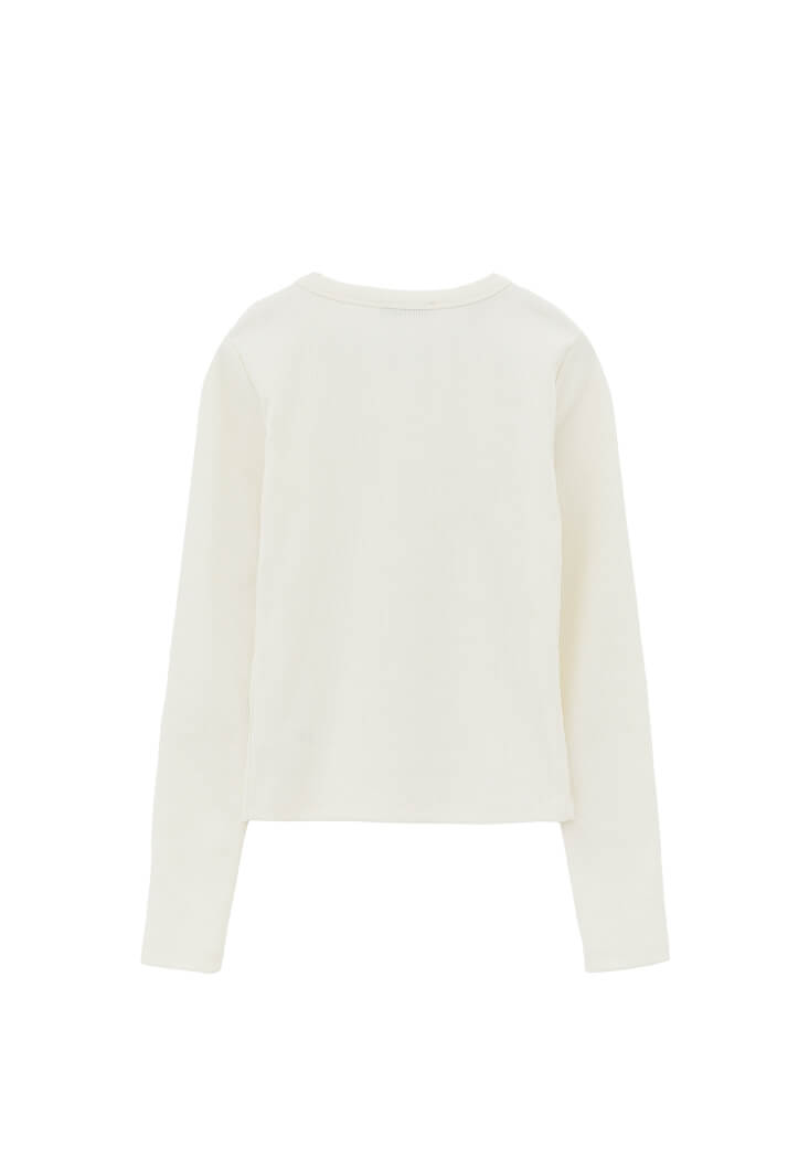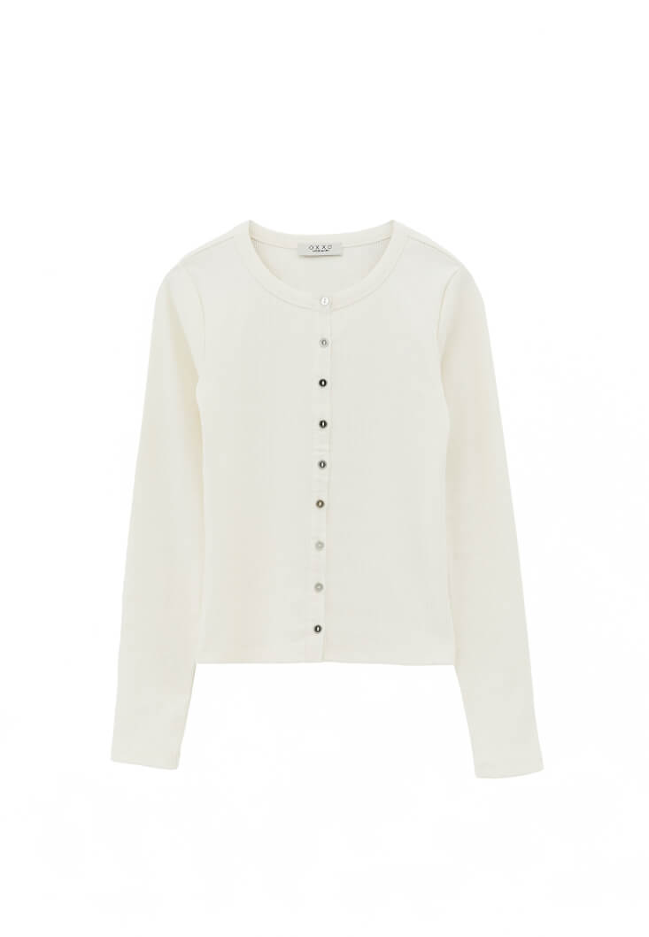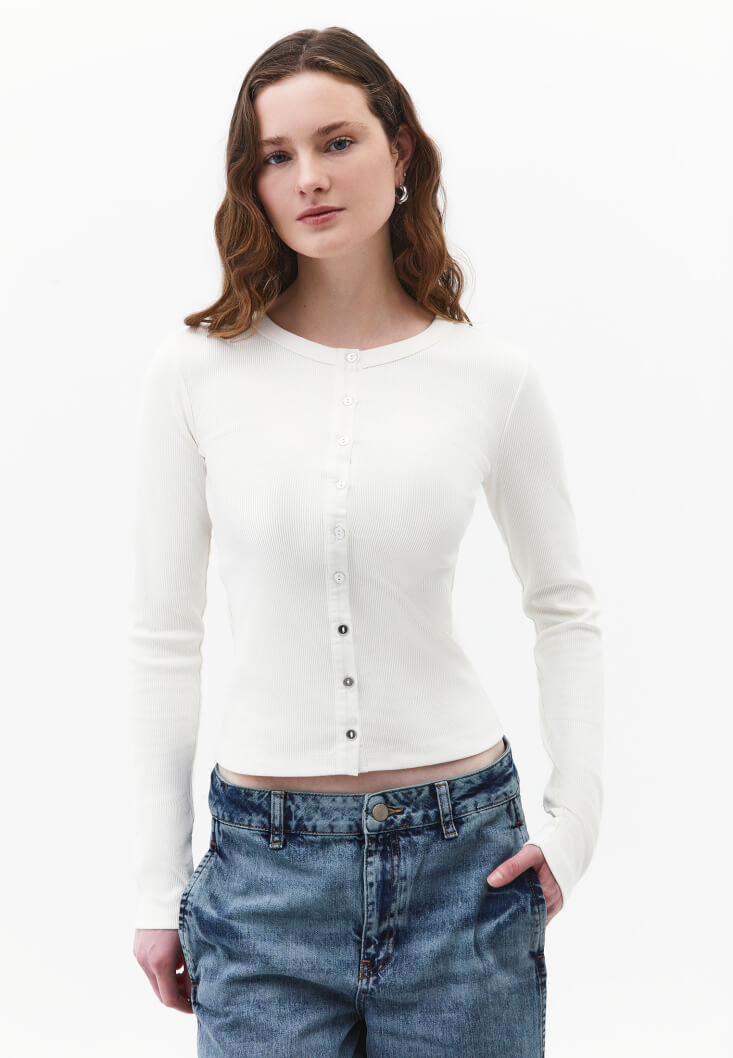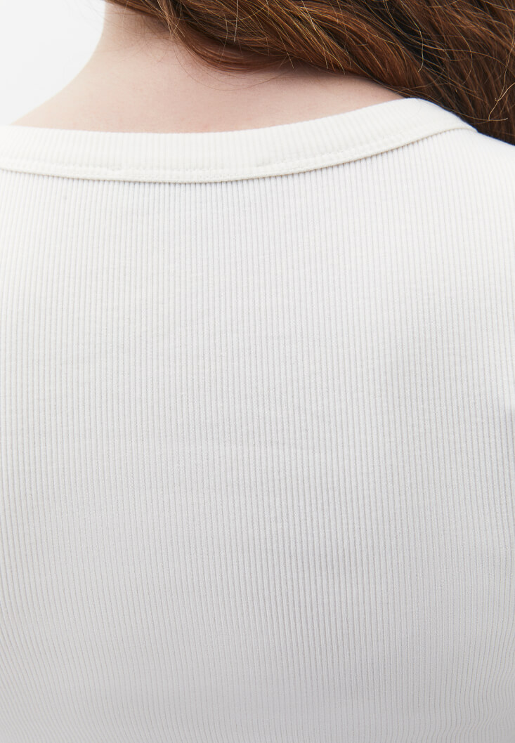 Krem Düğme Detaylı Tişört