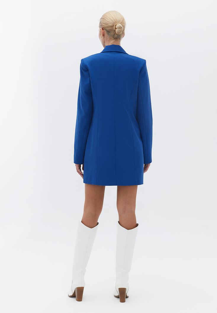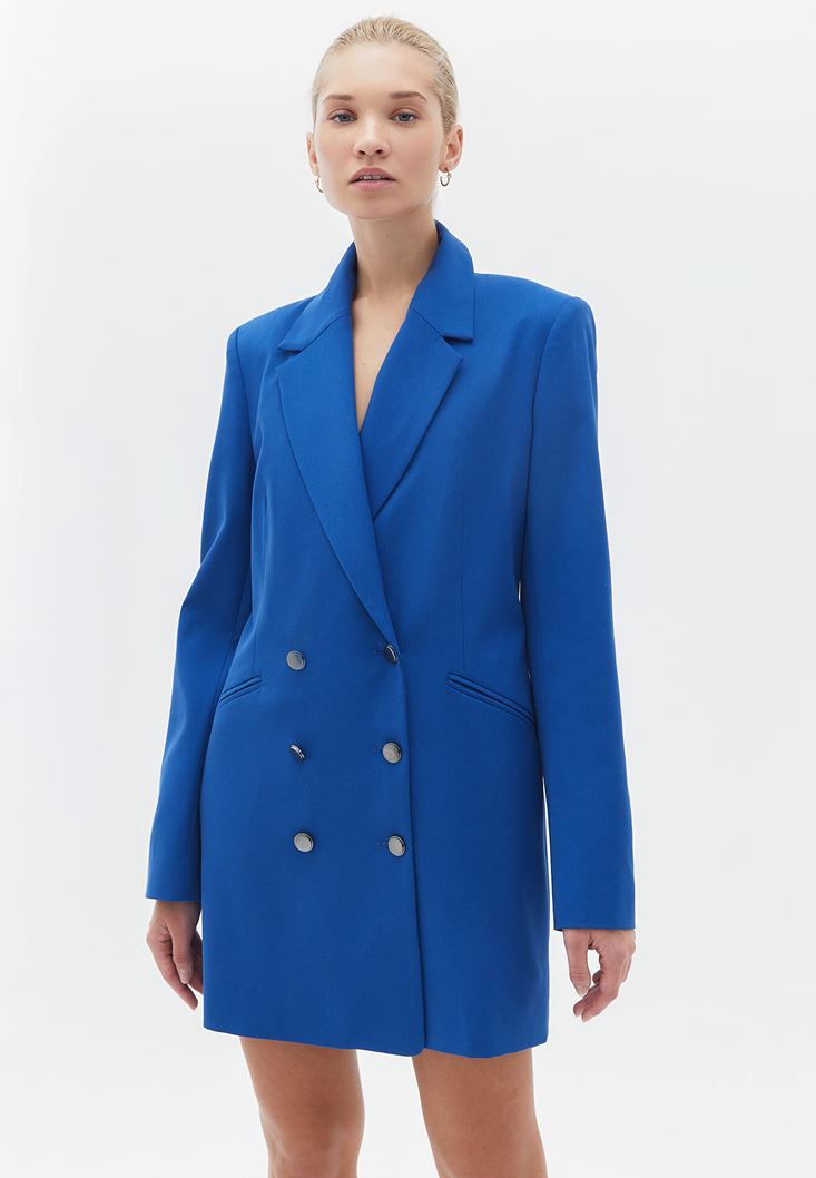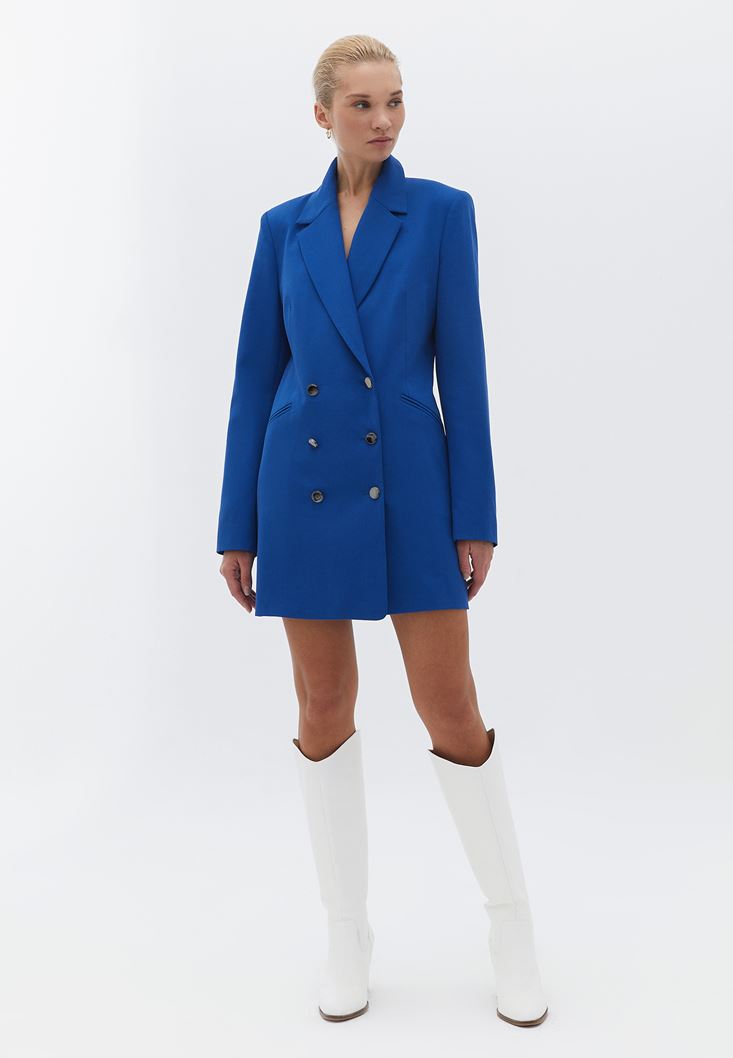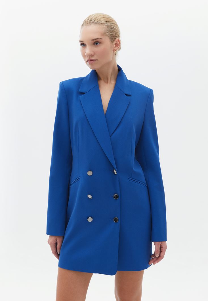 • Bayan Mavi Düğmeli Blazer Ceket Elbise