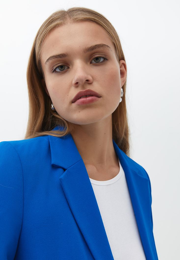 Viskon karışımlı özel doku, bedenden uzak fit, ön kısmı iki düğmeli, kapaklı iki cepli, standart boy, arka kısmı tek yırtmaçlı.