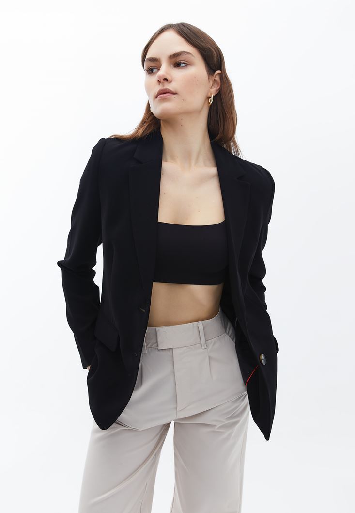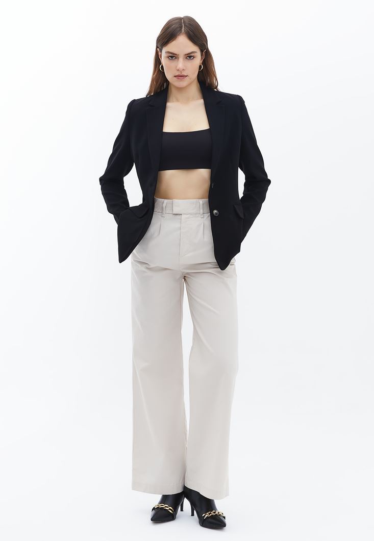 Bedene yakın fit, iki cepli, içi astarlı, iki düğmeli.