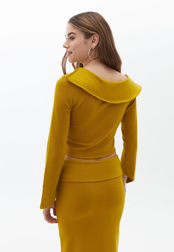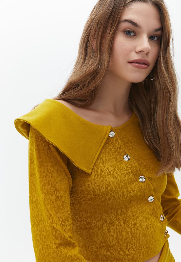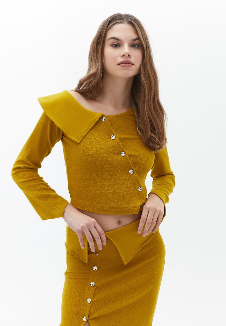 Yaka Detaylı Düğmeli Bluz