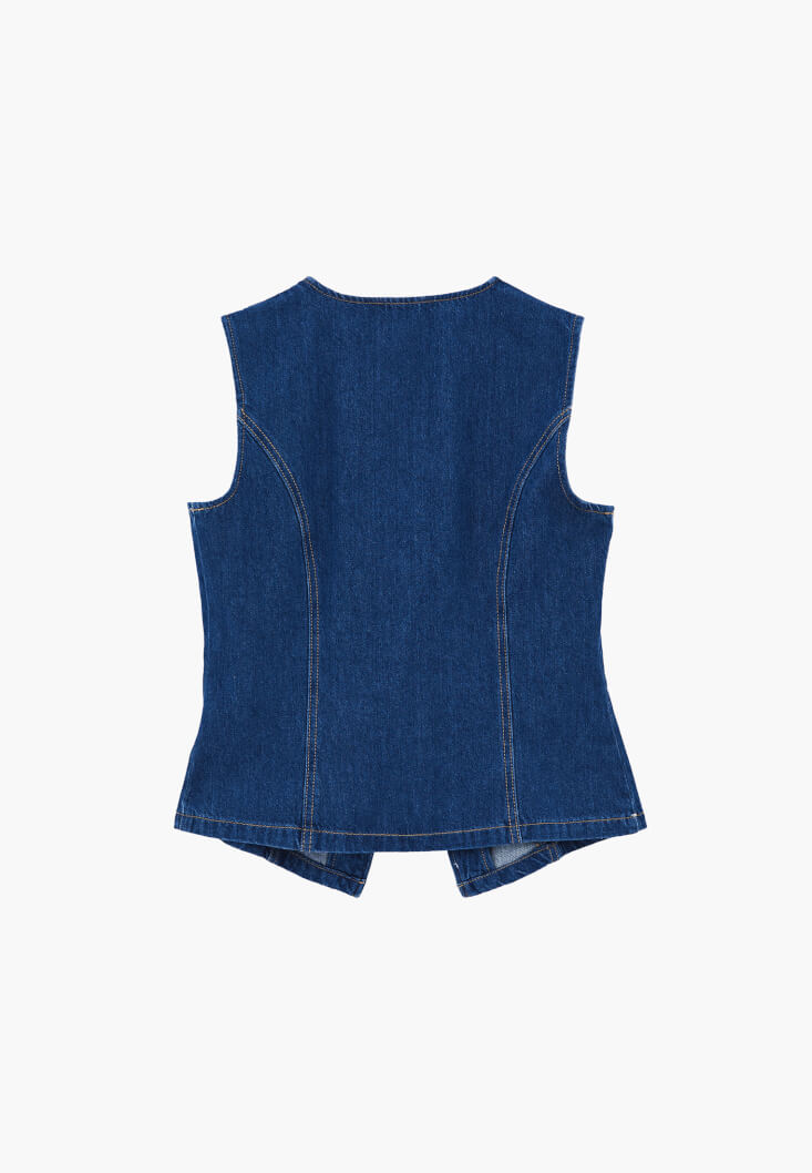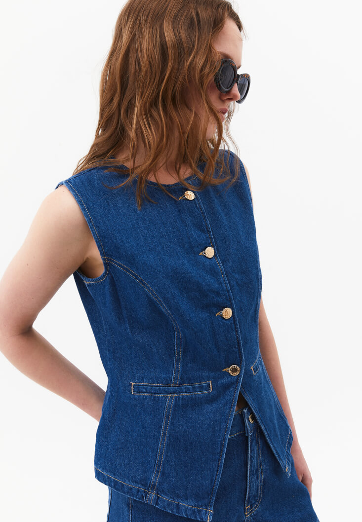 Mavi Düğmeli Denim Yelek ( TENCEL™ )