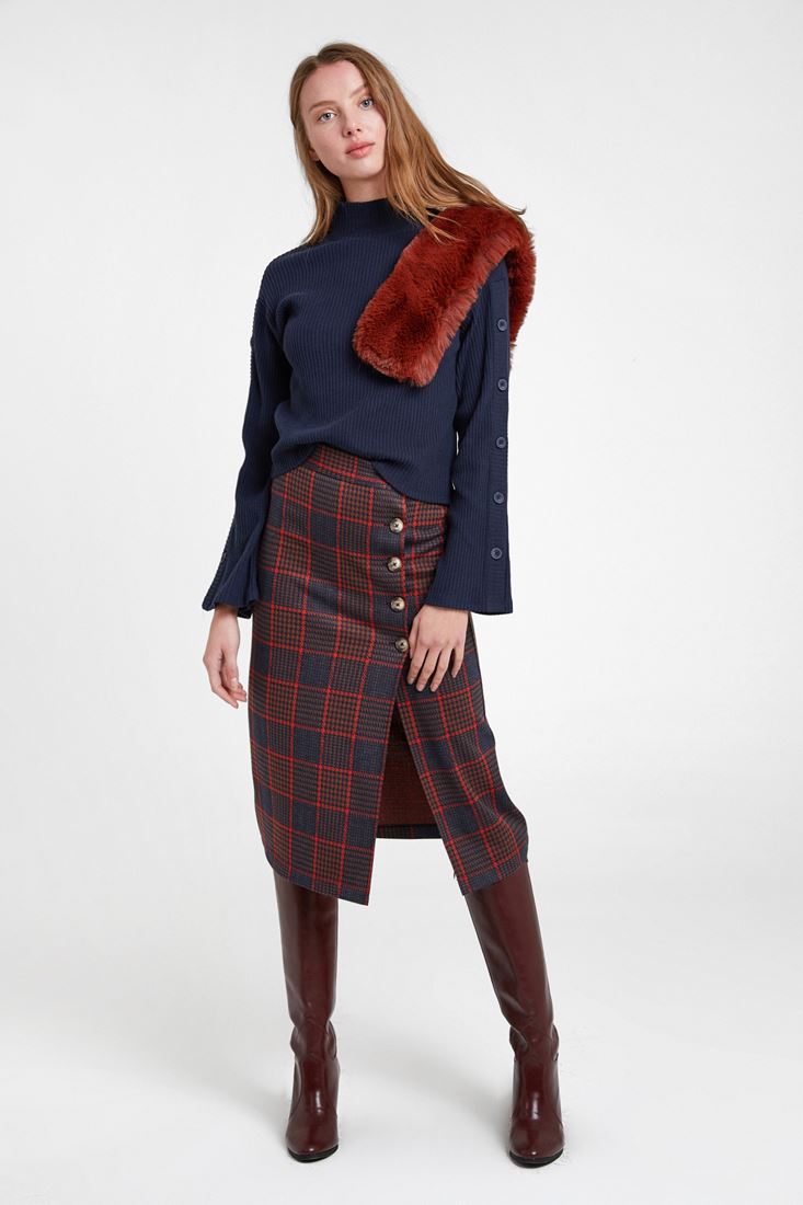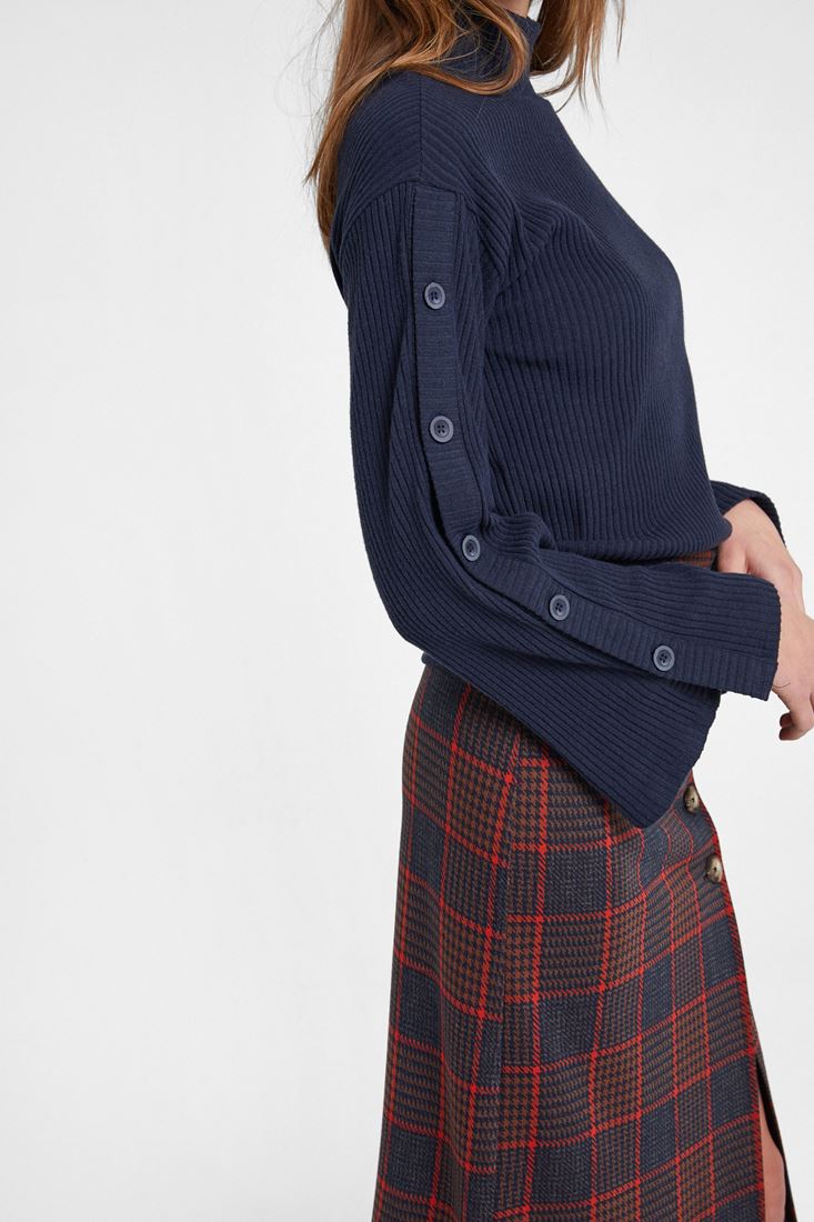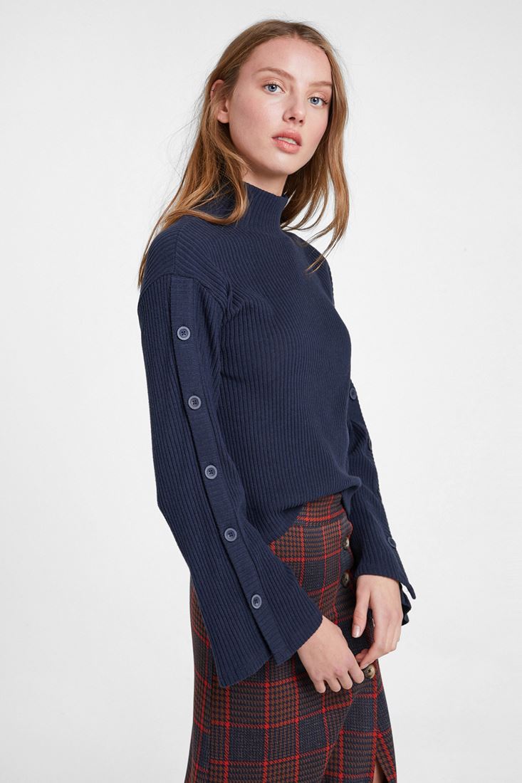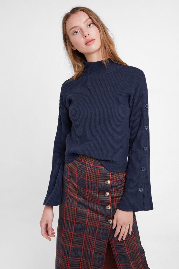 Lacivert Düğmeli Flare Kol Kazak