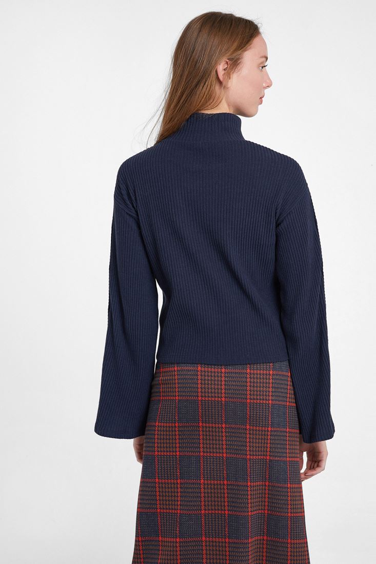 • Bayan Lacivert Düğmeli Flare Kol Kazak
