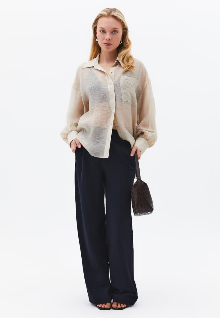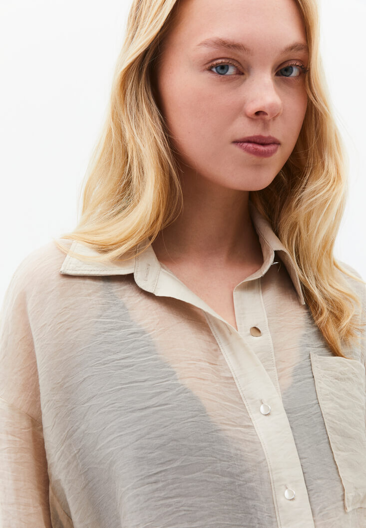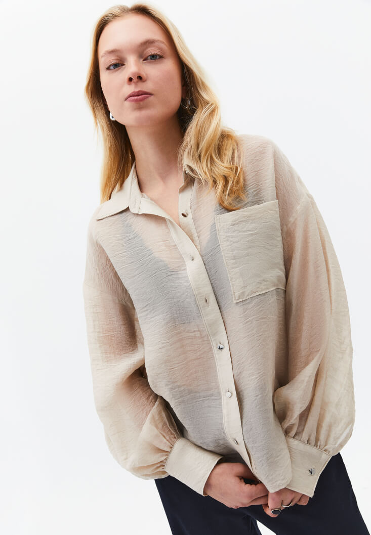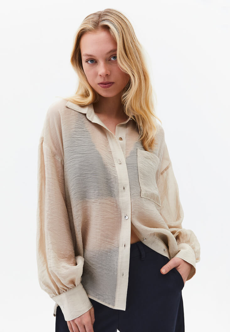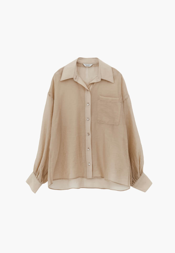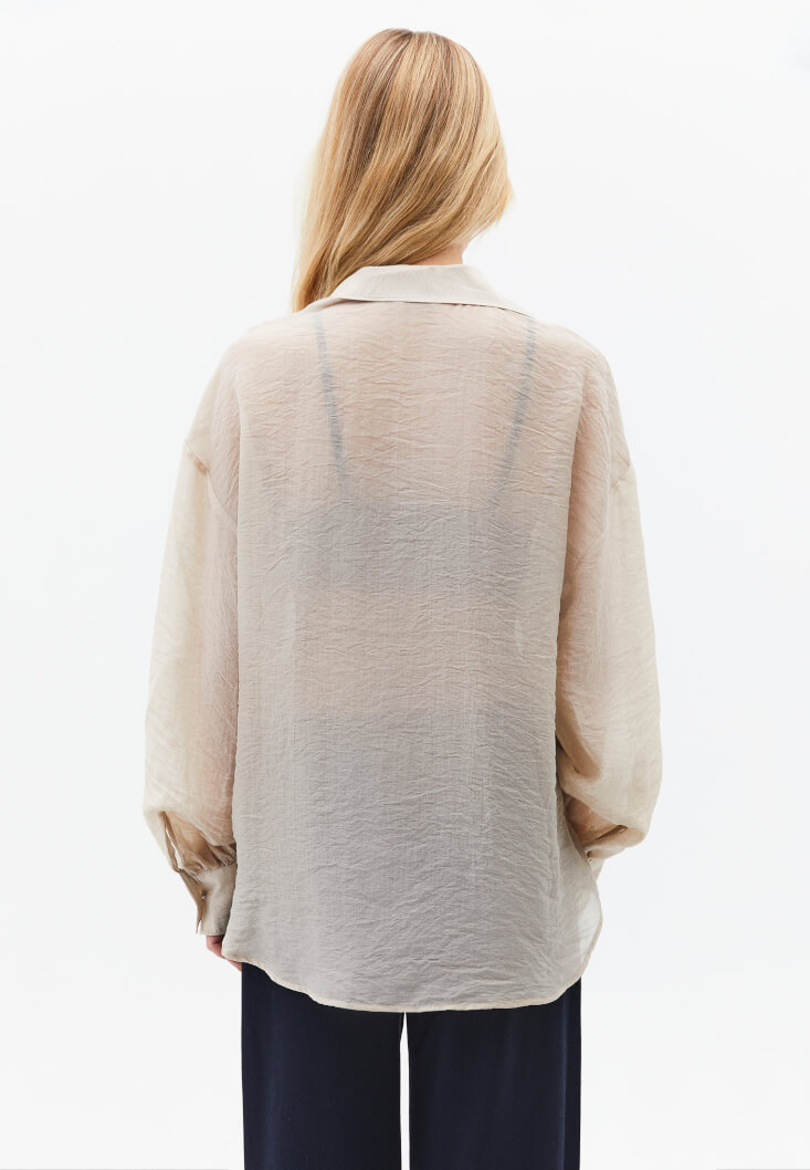 • Bayan Bej Düğmeli Gömlek ( TENCEL™ )