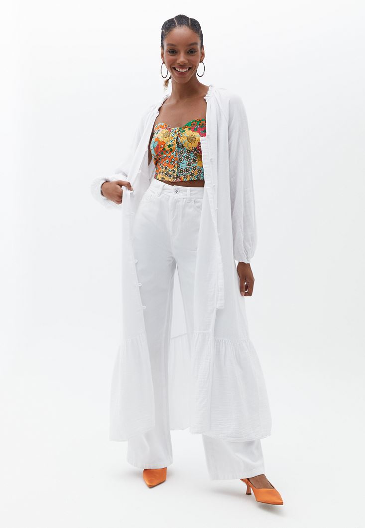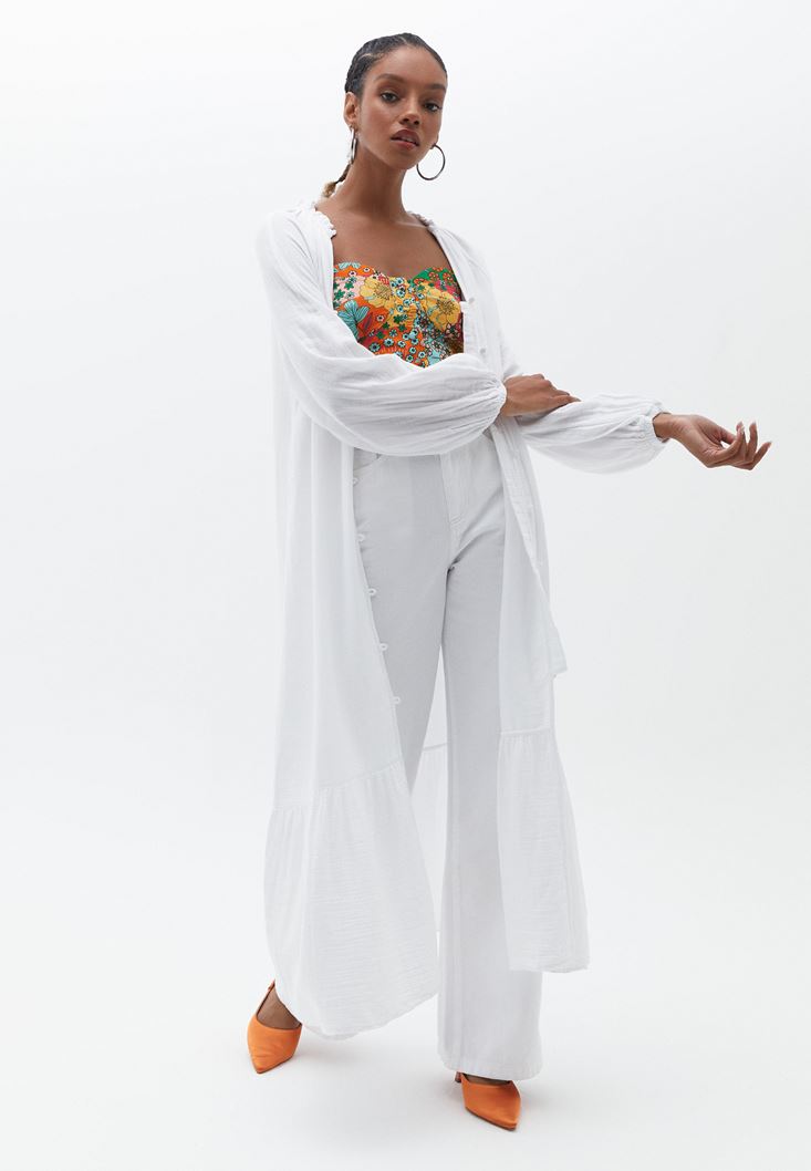 Düğmeli Kimono ve Wide-Leg Pantolon Kombini