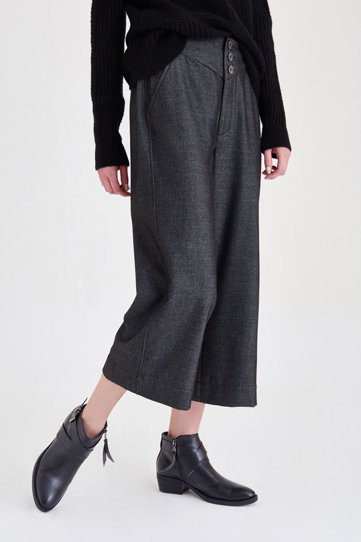 Düğmeli Kısa Pantolon modeli, viskon içerikli yumuşak dokusu ve bol kalıbıyla karşınıza çıkıyor. kadın pantolon modeli, kısa paça kesiminin yanı sıra önünde yer alan düğme ve cep detaylarıyla farklı bir görünüm sunuyor. Düğmeli kısa pantolon modeli, hem iş hem de günlük yaşantınızda rahatlıkla kullanabileceğiniz bir parça olarak Oxxo'da sizlerle buluşuyor. Düğmeli kısa pantolon modeli ile oversize gömlekler kullanarak rahat ve salaş bir görünüm elde edebilirsiniz. Rengarenk kazaklar eşliğinde tarzınızı ortaya çıkaracağınız kadın kısa pantolon modeli sayesinde göz kamaştırabilirsiniz. Düğmeli pantolon modeli ile kısa botlar veya düz ayakkabılar tercih ederek de eşsiz bir uyum yakalayabilirsiniz. Oxxo'nun hayran bırakan dokular ve rahat kalıplarla sizlere sunduğu kadın pantolon modelleri ile tarzınıza farklılık katabilirsiniz.