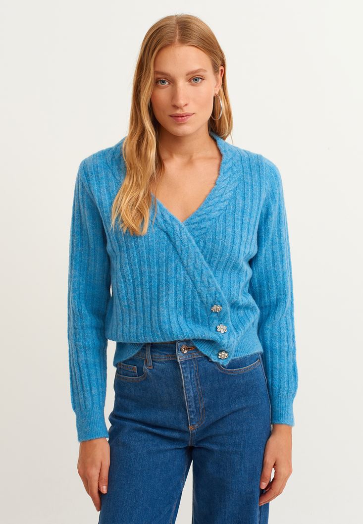 Mavi Düğmeli Kruvaze Detaylı Kazak